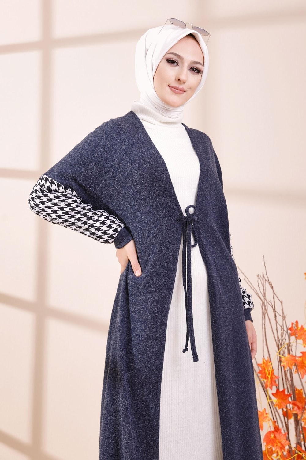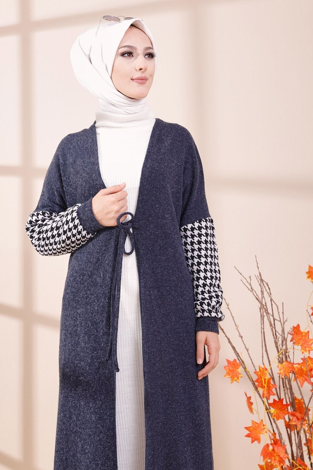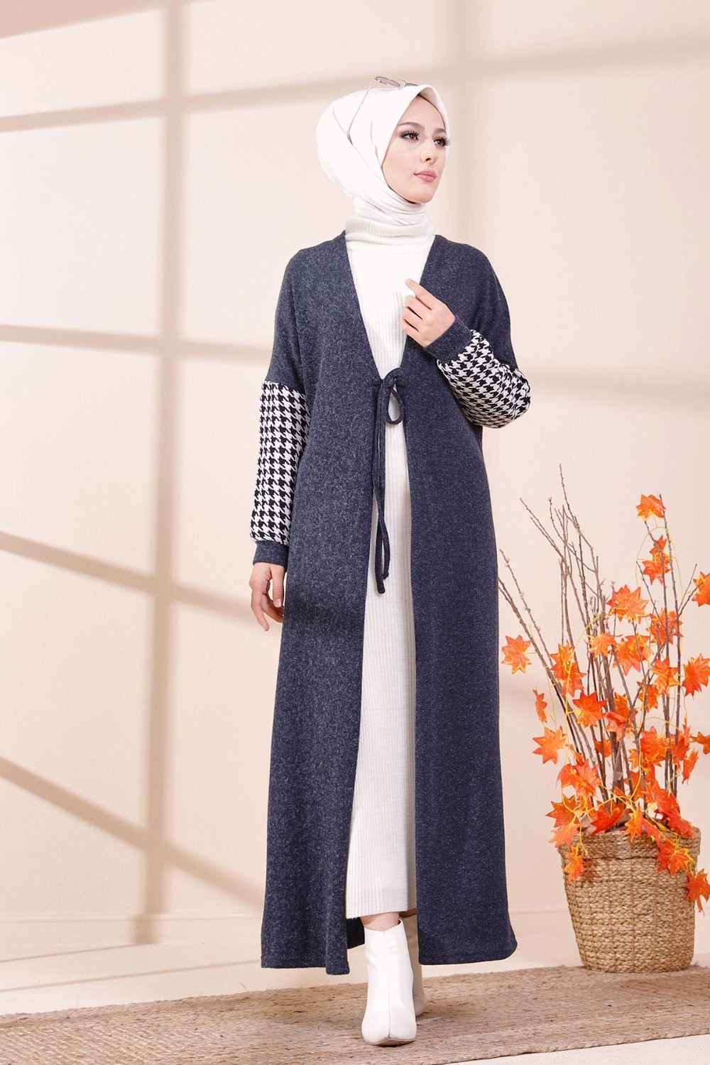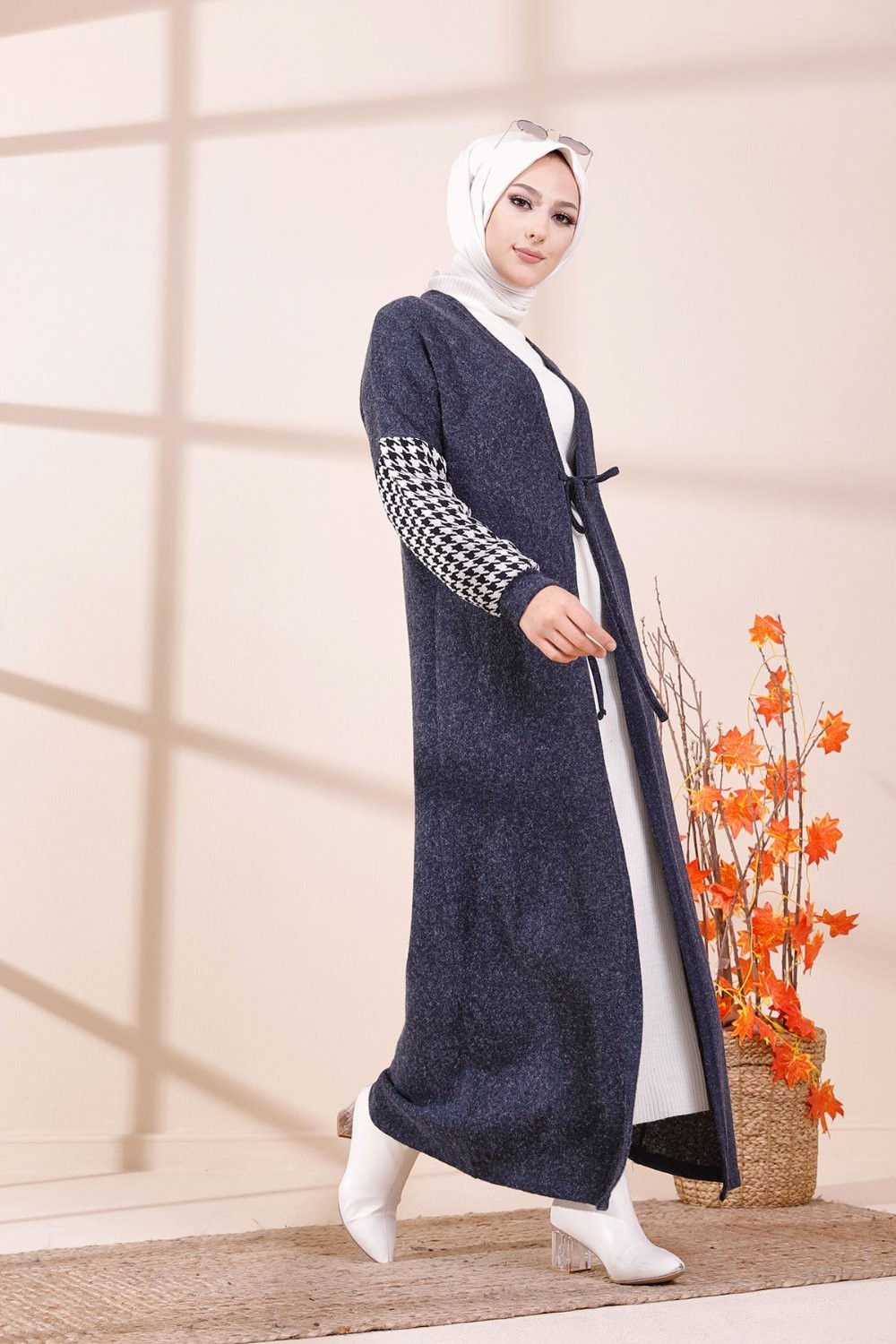 Cardigan long pour femme (Vetement hiver hijab) - Couleur bleu marine Vetement & Accessoire