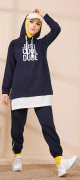 Survêtement avec extension blanche - Sweat à capuche imprimé et pantalon (Boutique de vêtement Chic pour femme voilée) - Couleur bleu marine - REF. 35676 (29.90 €)