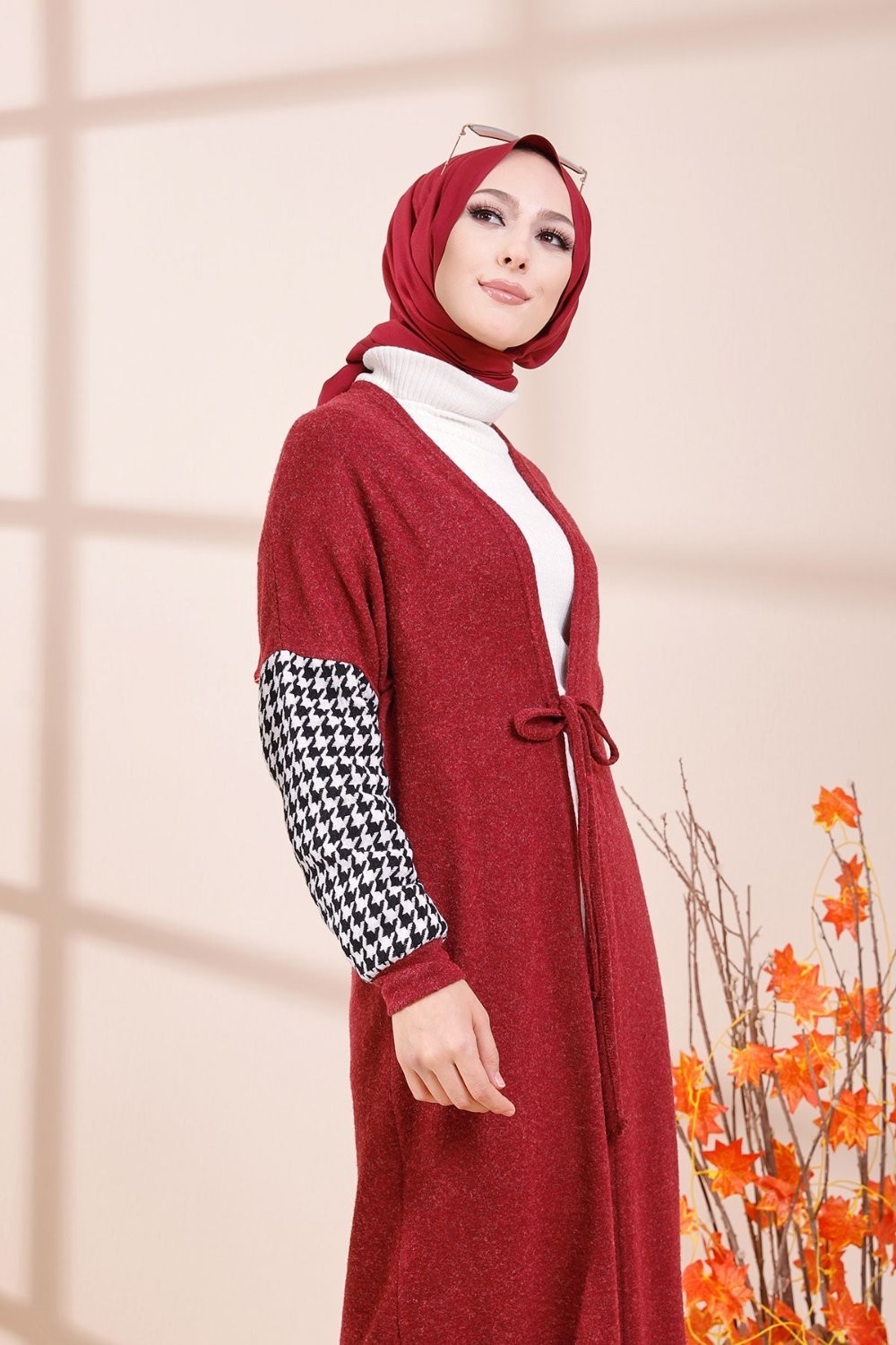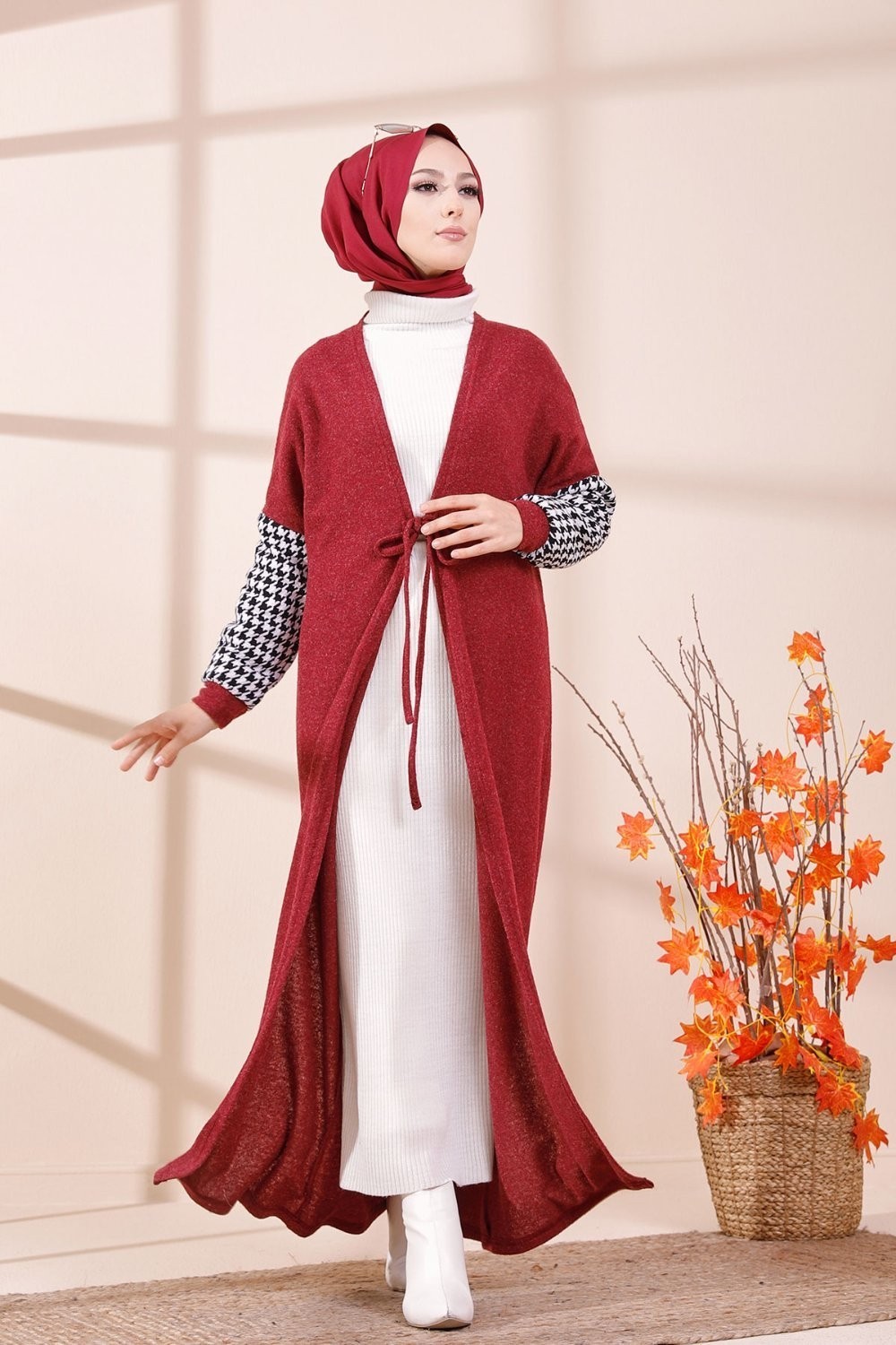 Cardigan long pour femme (Vetement hiver hijab) - Couleur rouge claret Vetement & Accessoire