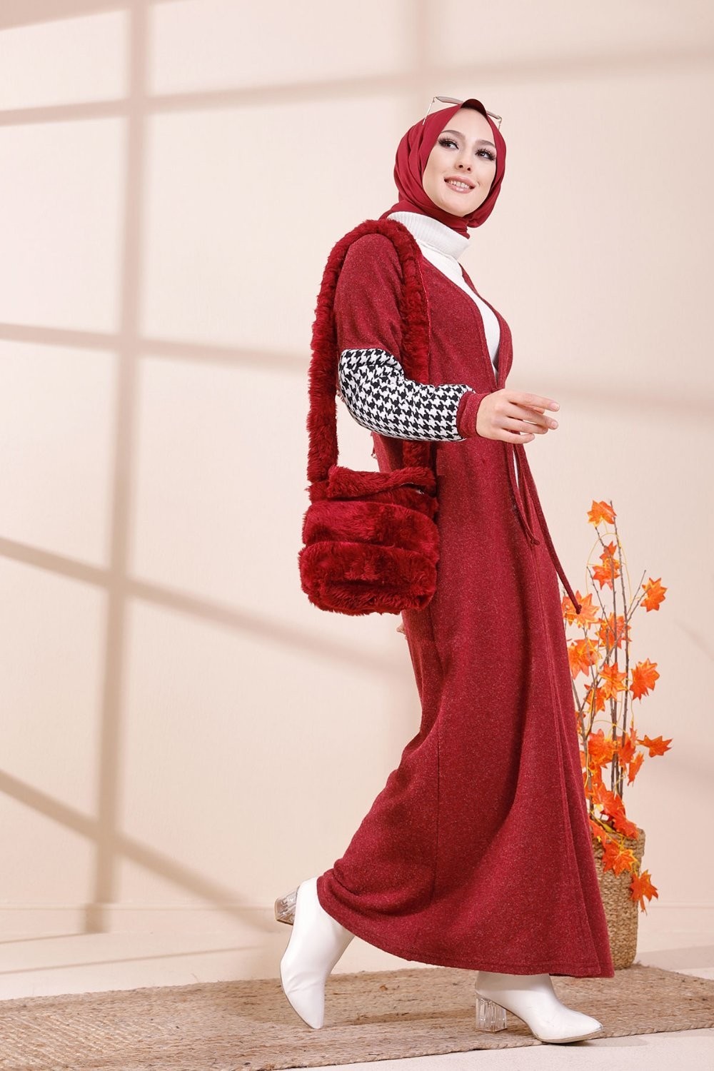 Robe Gilet pour femme (Tenue Hijab Chic Saison Automne-Hiver) - Couleur bordeaux - REF. 35669 (28.00 €)