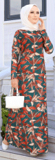 Robe longue en crêpe (Robes pour femmes voilées - Nouveautés) - Couleur brique - REF. 35934 (24.90 €)