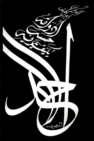 Carte postale calligraphique arabe "Nul ne modèle sa main sur ses instruments", "لا أحد يكيف يديه حسب أدواته", (Citation de Abu Al-Haytham de Gargan).