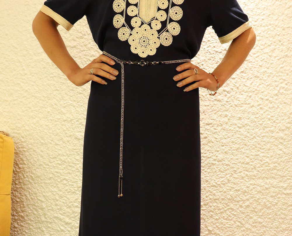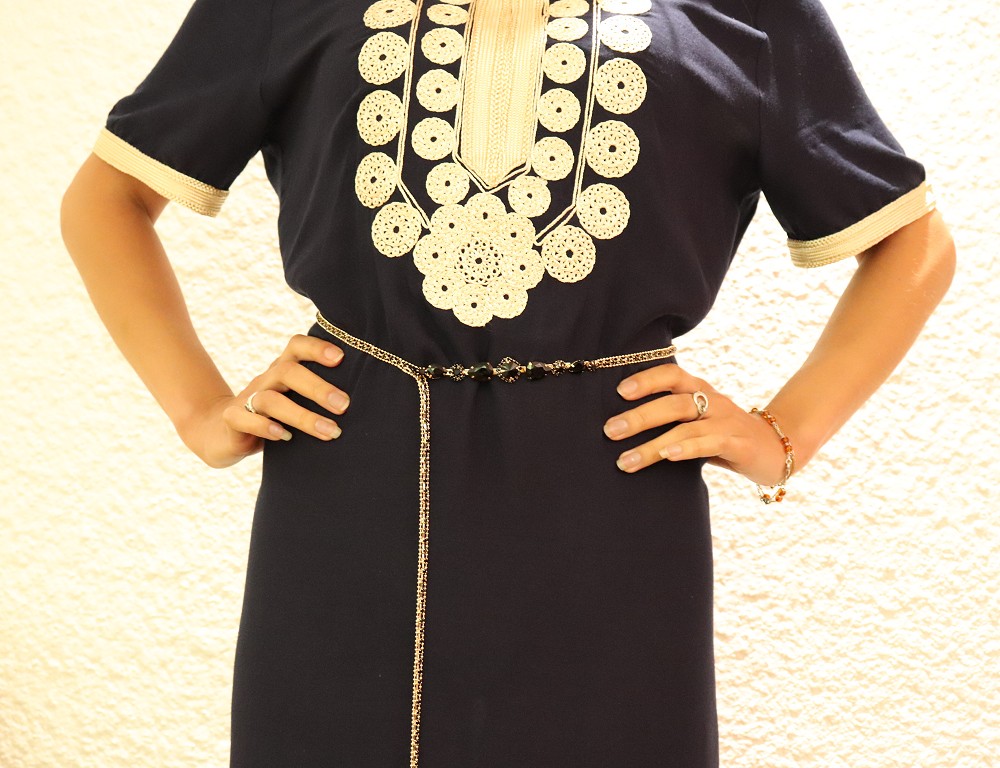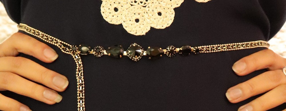 Ceinture fine agrémentée de fins strass sur toute la longueur et finition gros strass sur l’extrémité, fermeture crochet.
