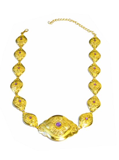 Ceinture marocaine dorée et ornée de diamants, pour caftan & takchita, cette "mdama" avec perles de negafa saura mettre en valeur votre silhouette, vous pouvez la marier avec un caftan, takchita ou caftan de Dubaï. Cette jolie ceinture se ferme avec un crochet.