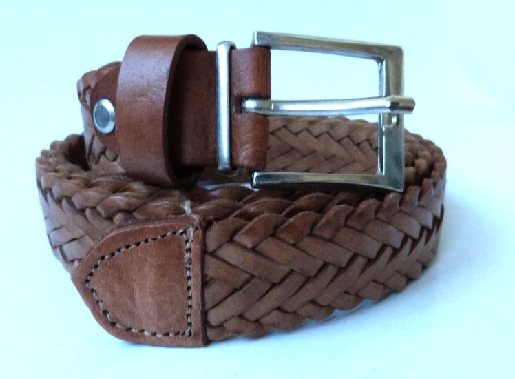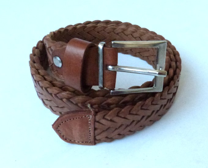 Ceinture tressee pour homme en cuir de couleur marron