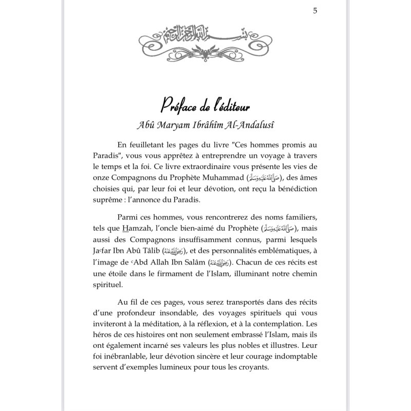 Dans "Ces Hommes Promis au Paradis", nous vous invitons à une plongée exquise dans les vies extraordinaires de 11 compagnons du Prophète Muhammad (psl). Ces hommes, issus de divers horizons, ont trouvé leur chemin vers l'Islam et ont été récompensés par l'annonce céleste du Paradis. Parmi eux, des figures illustres telles qu'Hamza, l'oncle chéri du Prophète, mais également des compagnons insuffisamment connus, dont Ja'far Ibn Abi Talibas, et des personnalités éminentes, à l'instar d'AbdAllah Ibn Salama.