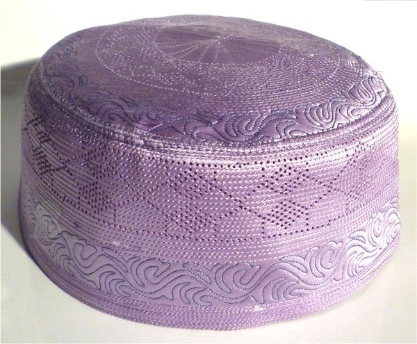 Chachia rigide - Taguiya - saumon avec bande mauve clair et des jolies décorations Taille au choix - REF. 23147 (3.50 €)