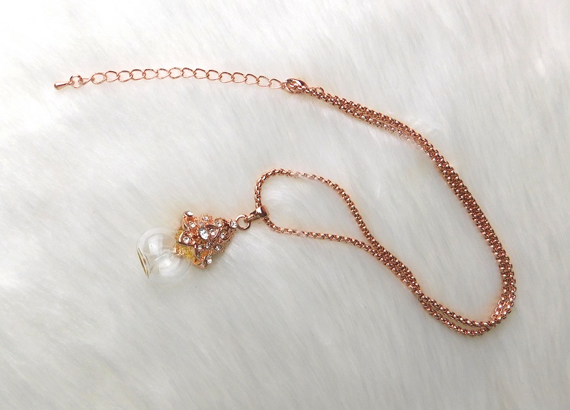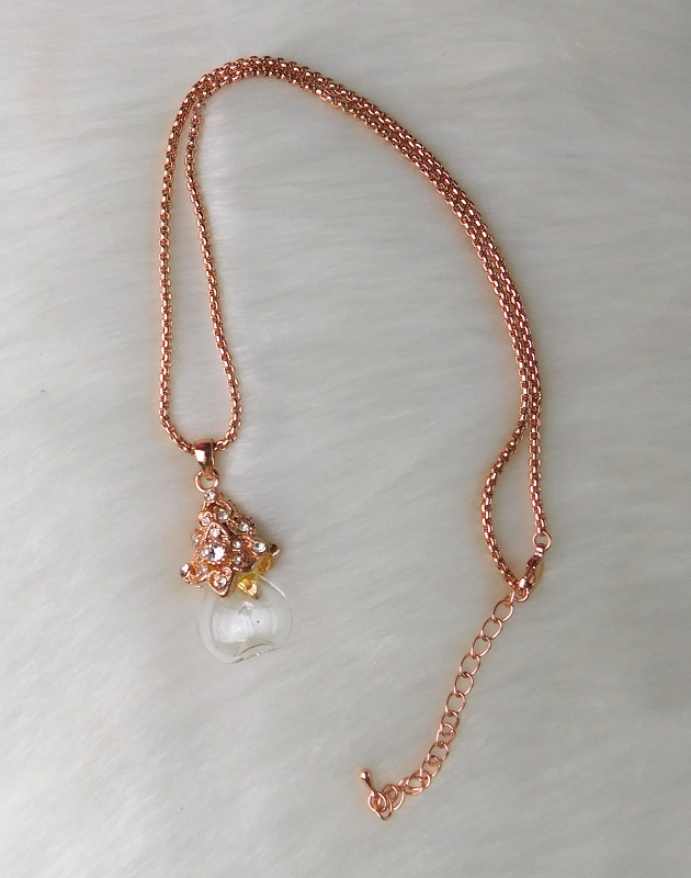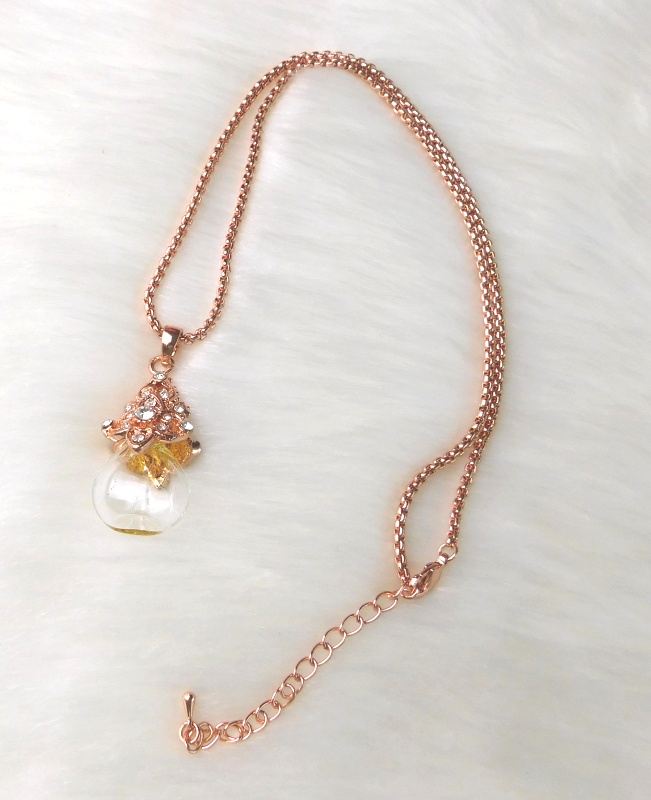 Chaîne dorée avec bijoux pendentif décoré de diamants pouvant contenir du parfum. Pour emporter son parfum préféré toujours sur soi.