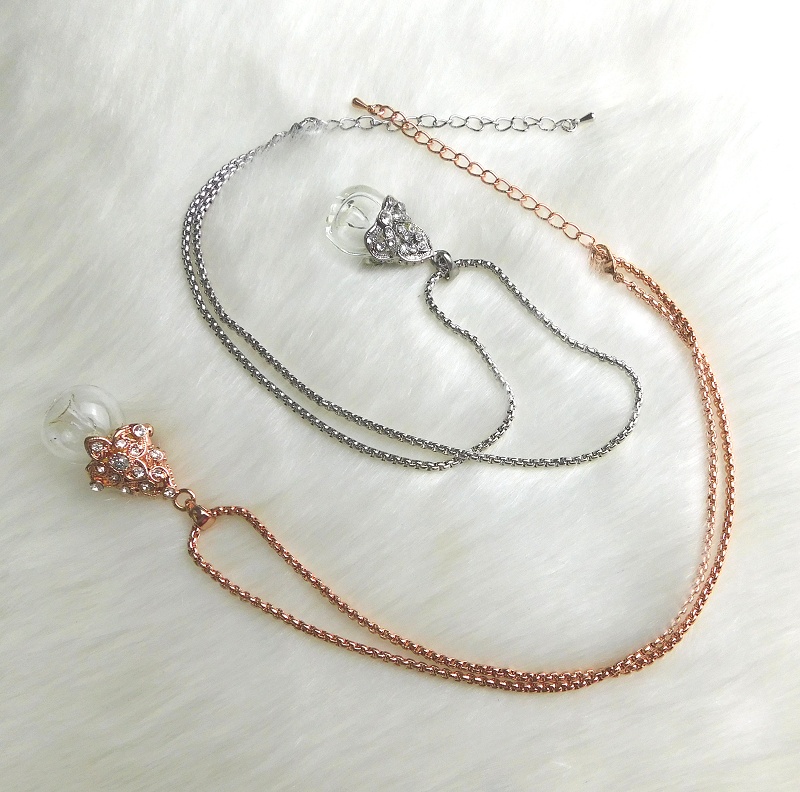 Chaine doree avec bijoux pendentif sous forme de mini bouteille de parfum (collier cosmetique)