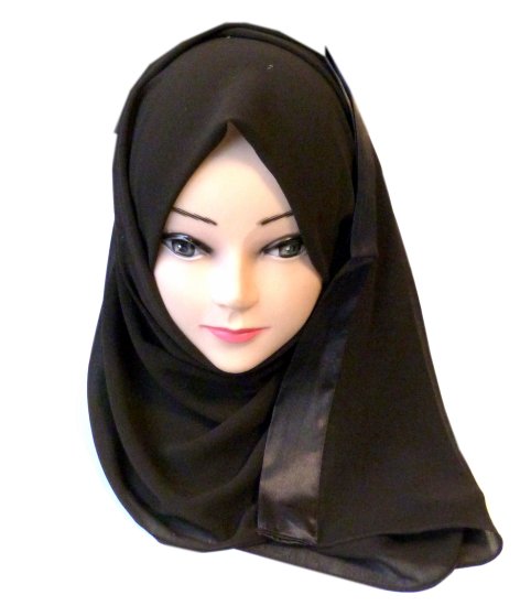 Châle / Foulard hijab une pièce marron foncé avec bande satinée Vetement & Accessoire