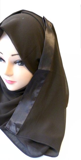 Chale / Foulard hijab une piece marron fonce avec bande satinee