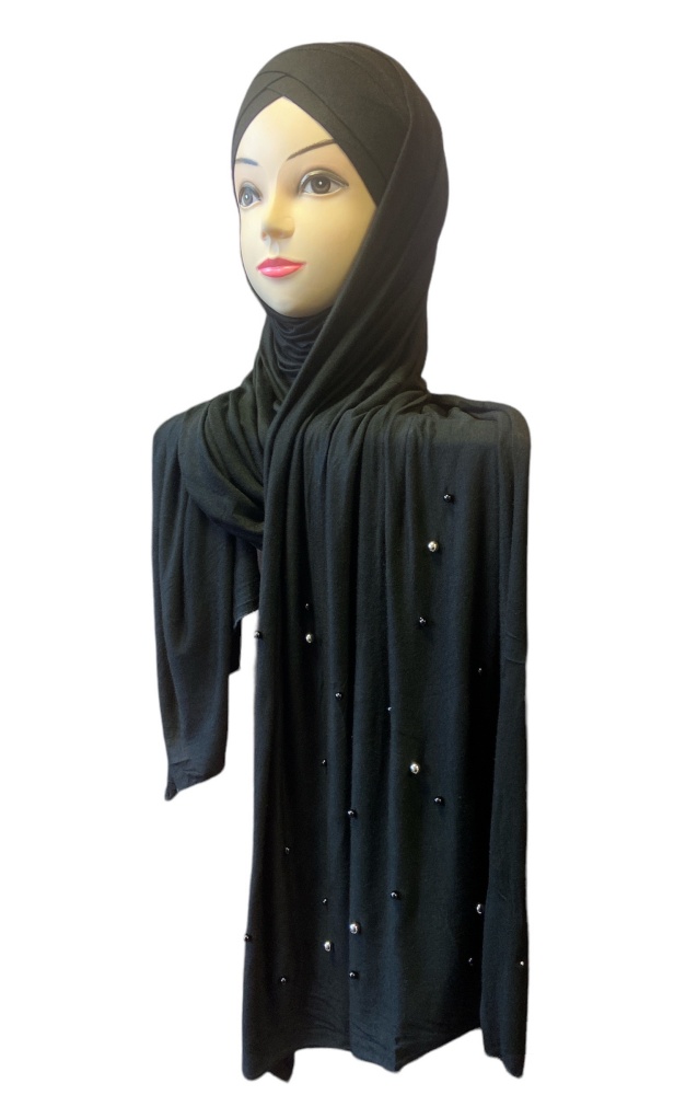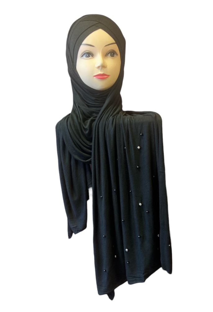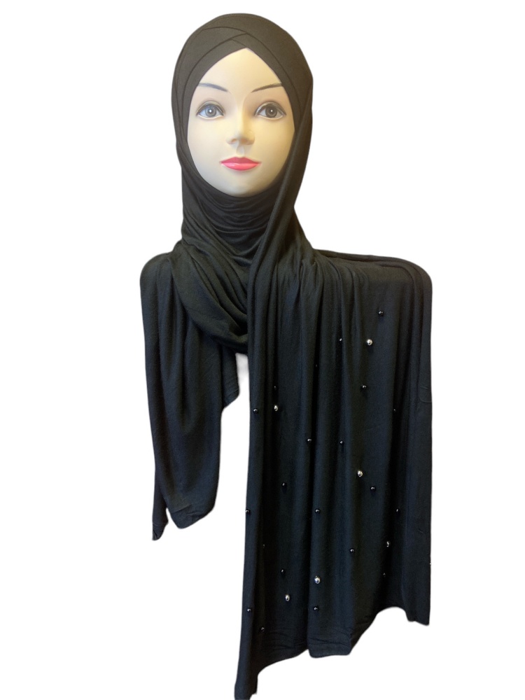 Hijab noir pailleté avec boutons et chaines fines - REF. 22067 (6.90 €) - En Promotion à 4.90 €