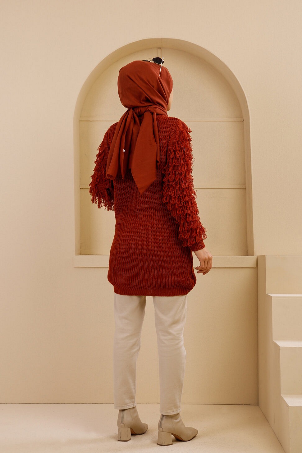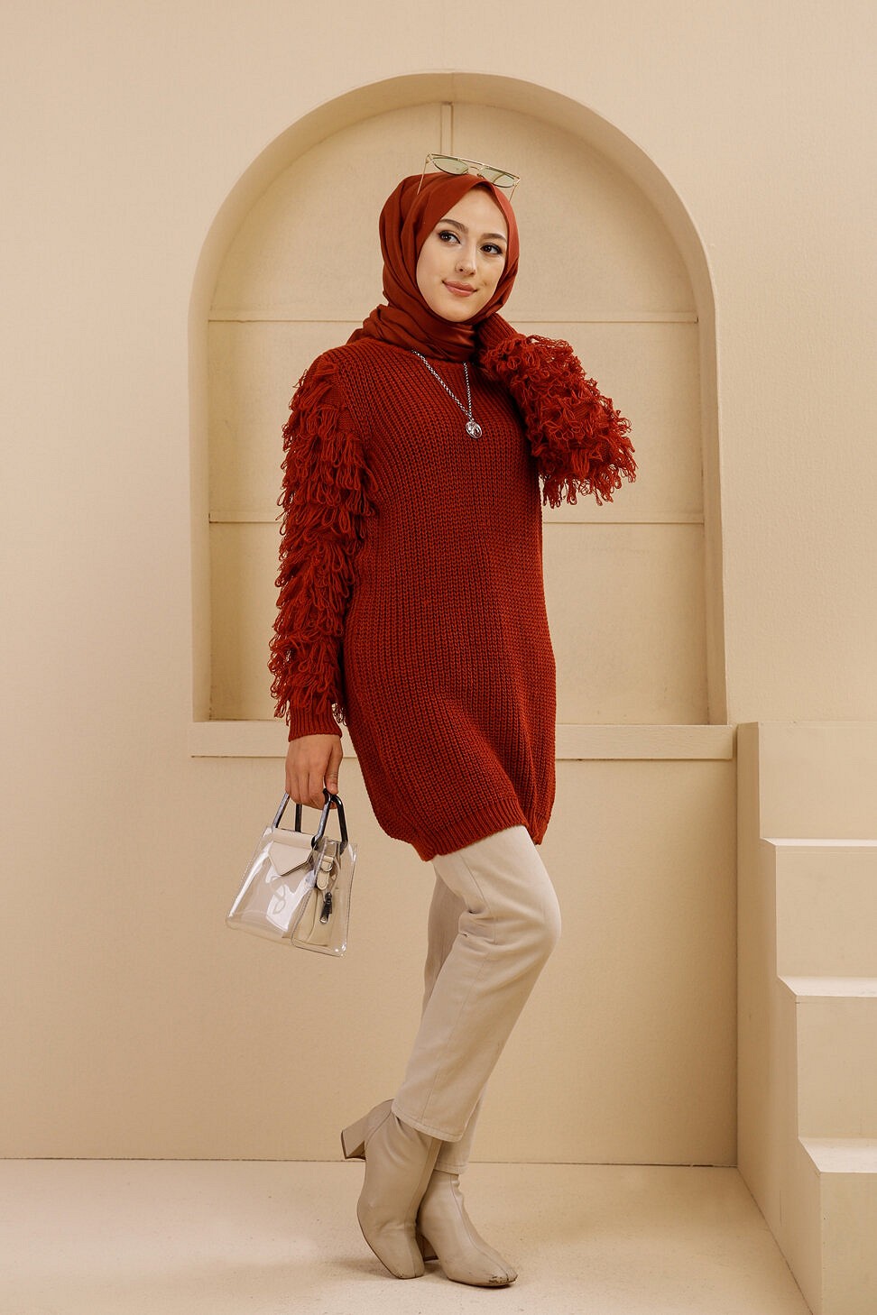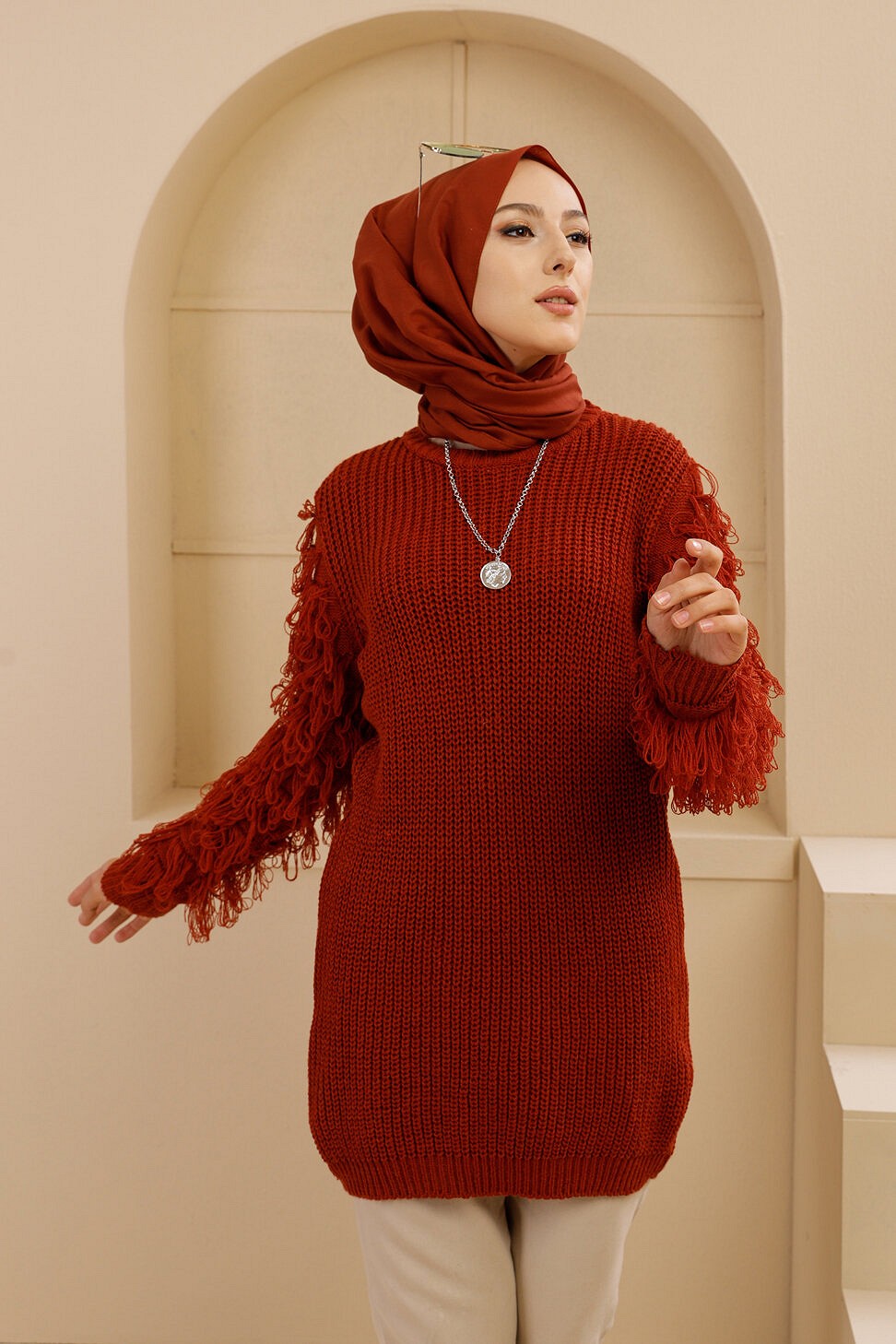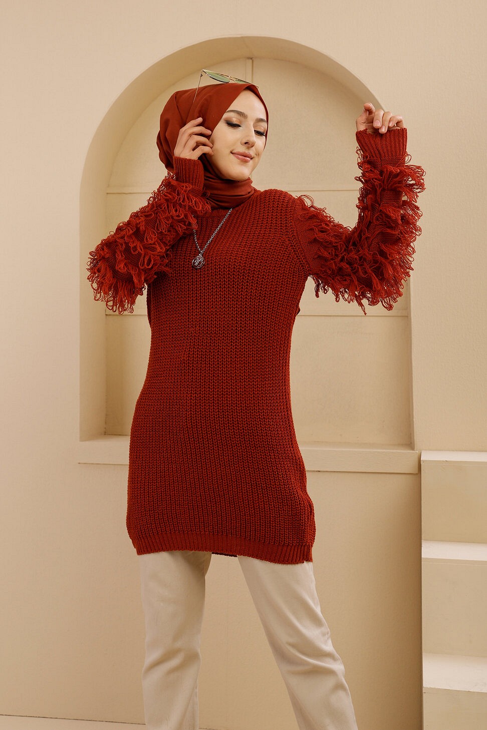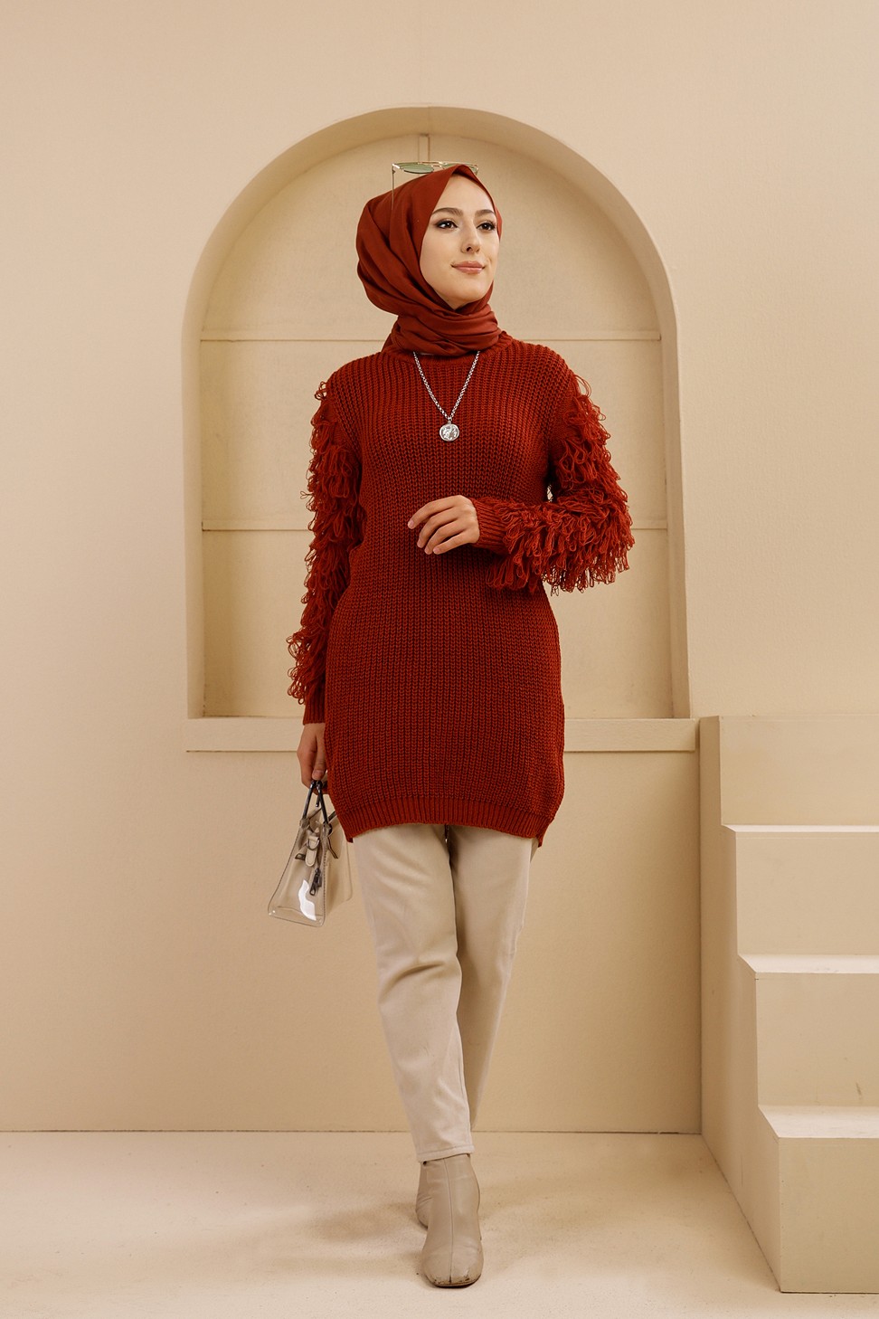 Chandail - Tricot long pour femme - Couleur brique Vetement & Accessoire