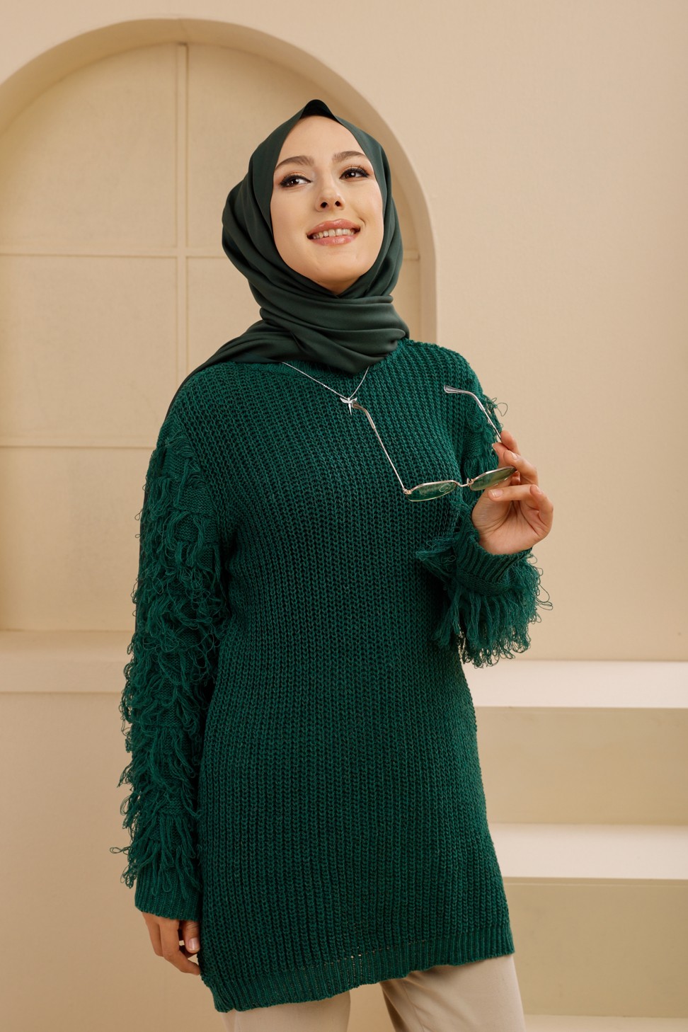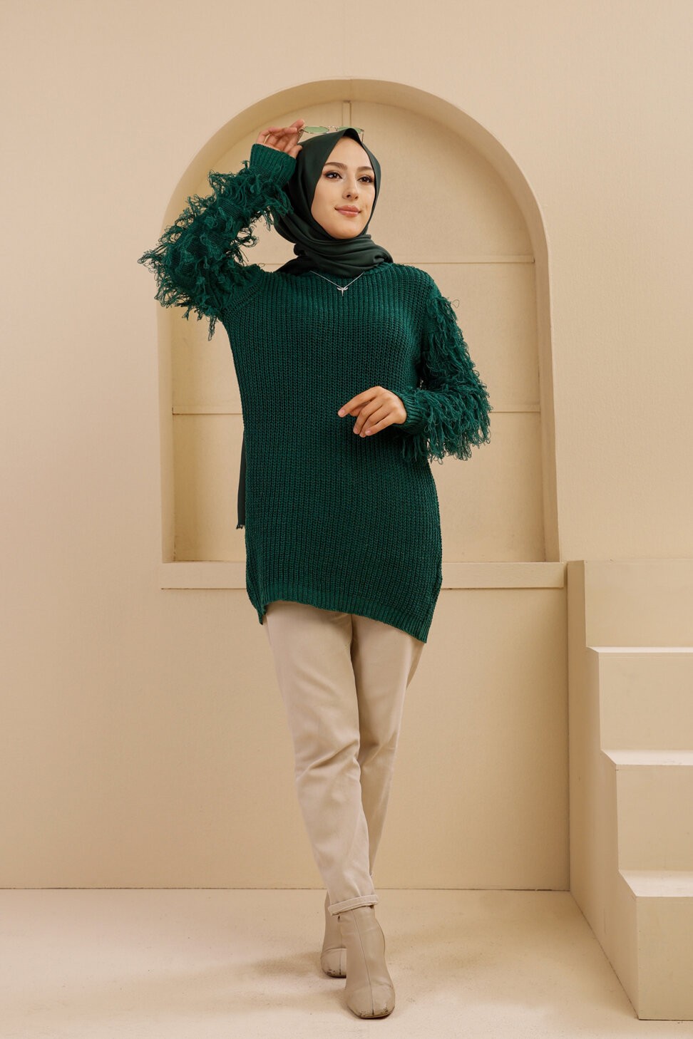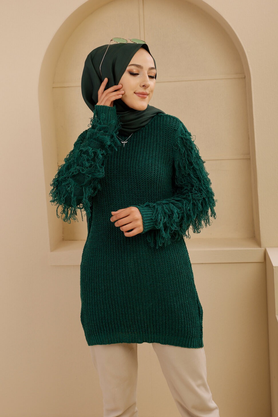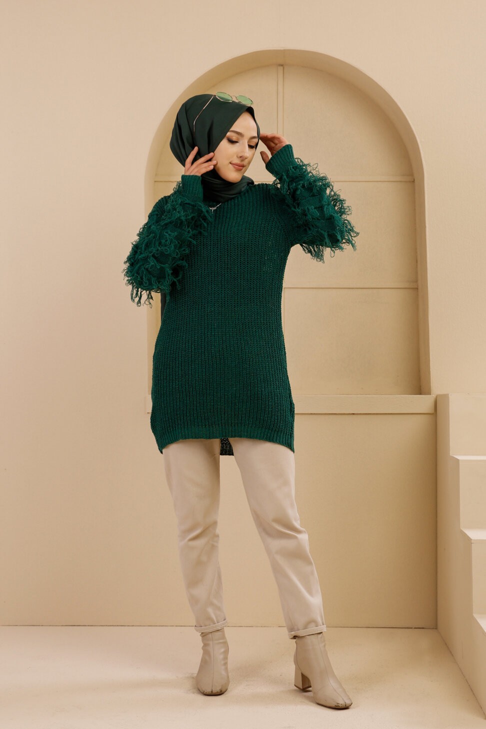 Chandail - Tricot long pour femme - Couleur vert émeraude Vetement & Accessoire