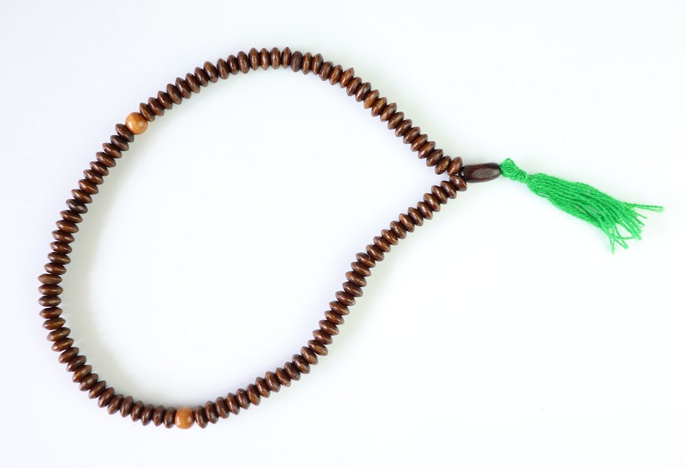 Chapelet traditionnel en bois (Sabha) à 99 grains. Avec séparateur tous les 33 grains.