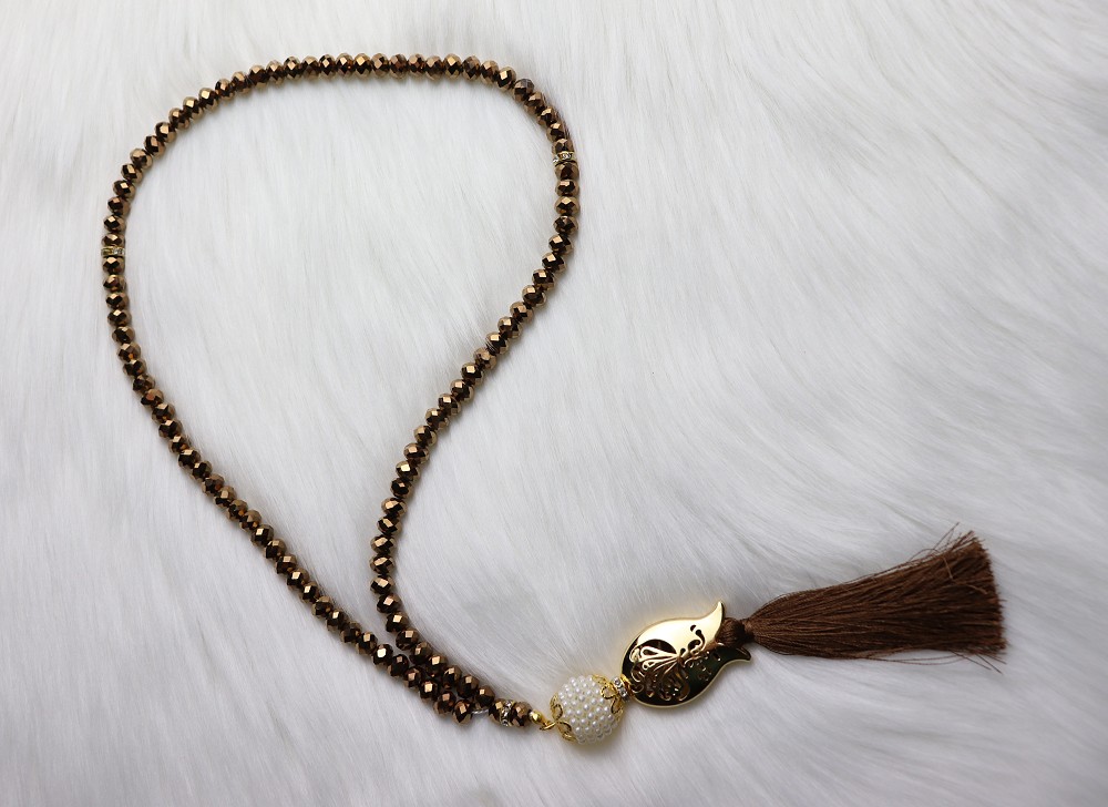 Chapelet "Sebha" de luxe a 99 perles en cristal decoration metallique et perles - Couleur Marron