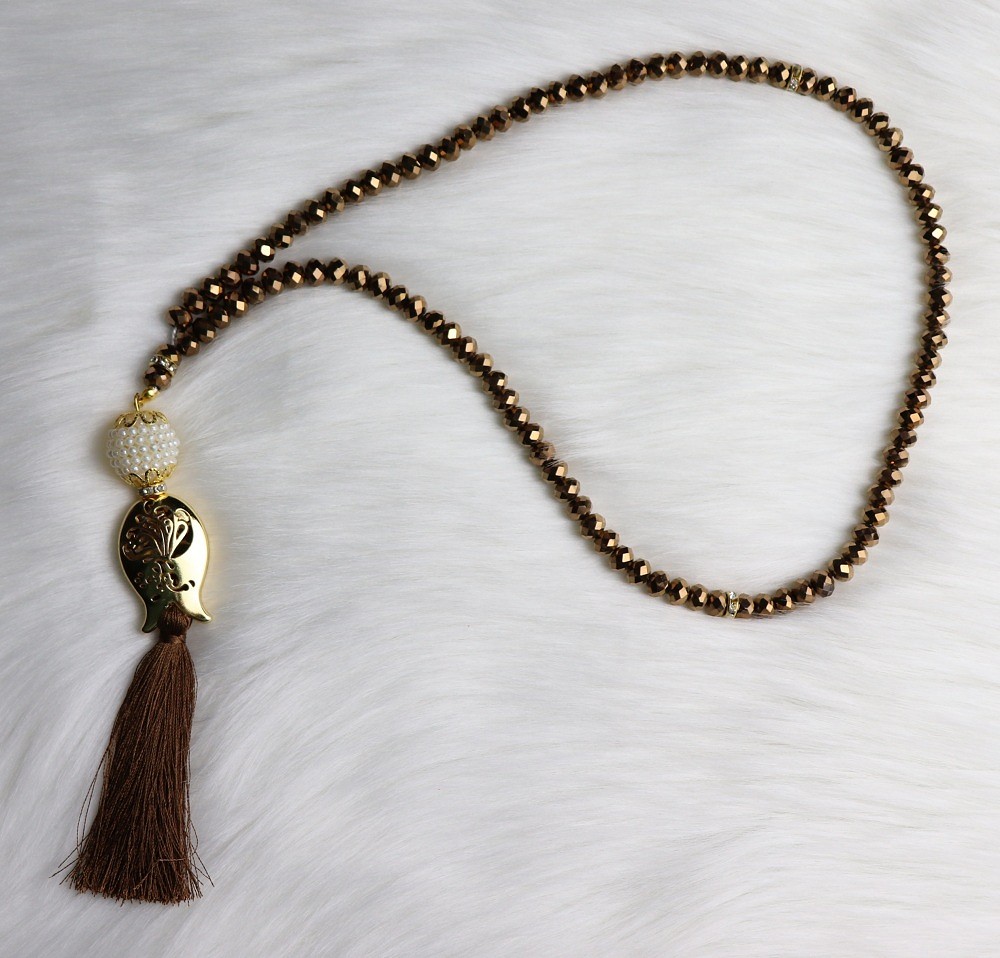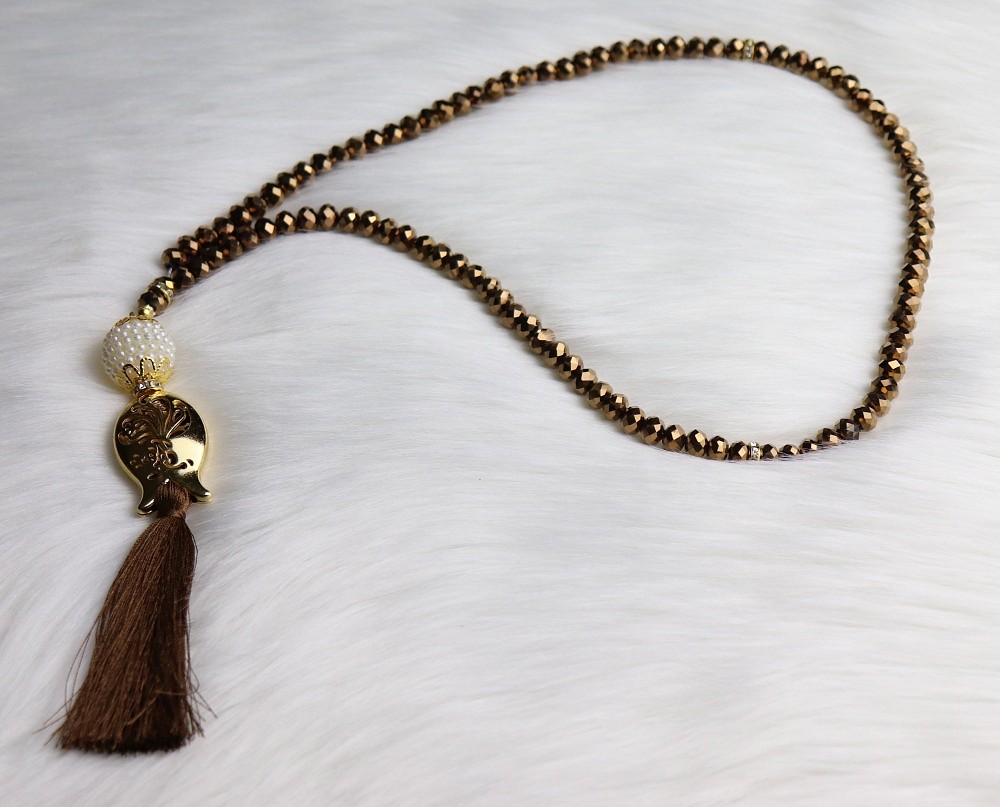 Chapelet "Sebha" de luxe à 99 perles en cristal décoration métallique et perles - Couleur Marron Deco & Cadeau