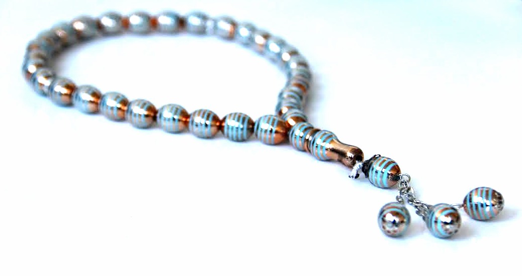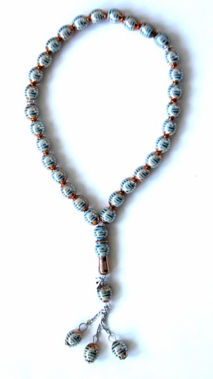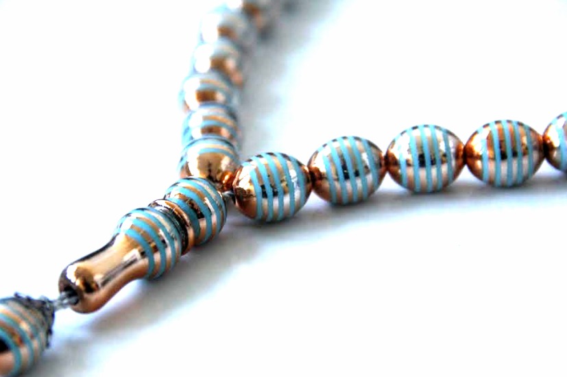 Chapelet "Sebha" de luxe bleu doré ultra-résistant (33 grains gros ronds).