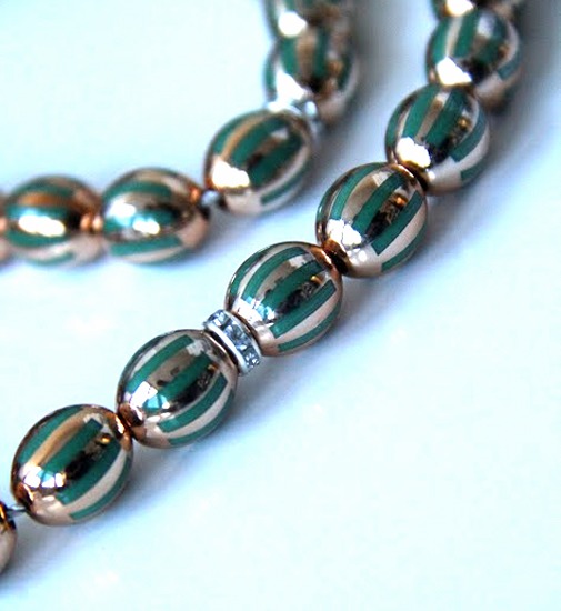 Chapelet de luxe à 33 perles vertes dorées avec croissant et étoile sur chaque perle - REF. 32645 (6.90 €)