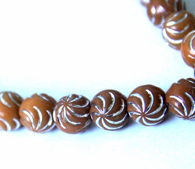 Chapelet "Sebha" marron à 33 grains avec motifs argentés - REF. 25762 (4.90 €)