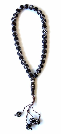 Chapelet "Sebha" marron foncé à 33 grains avec motifs argentés Deco & Cadeau