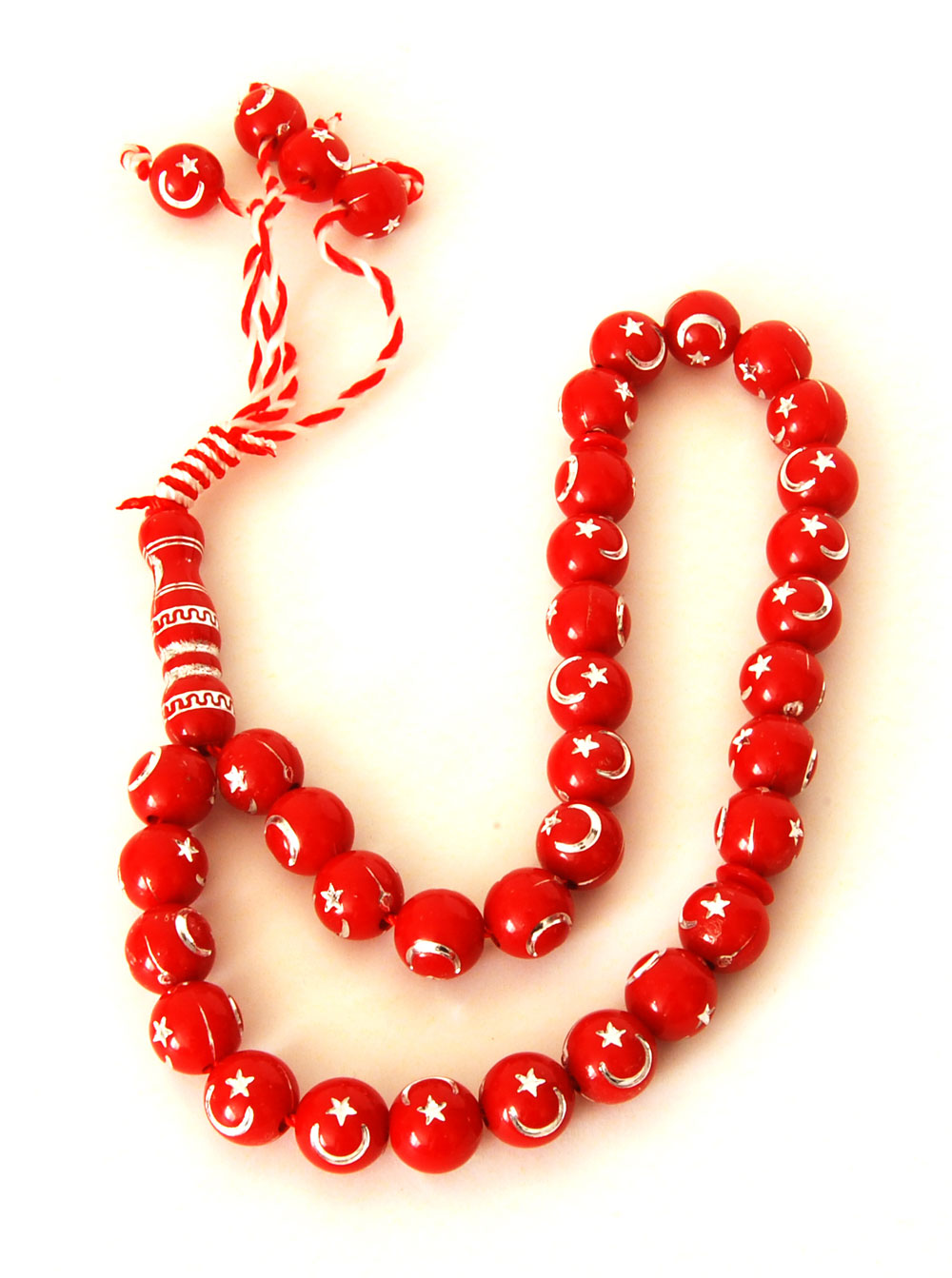 Chapelet "Sebha" rouge-bordeaux à 33 grains avec motifs argentés Divers