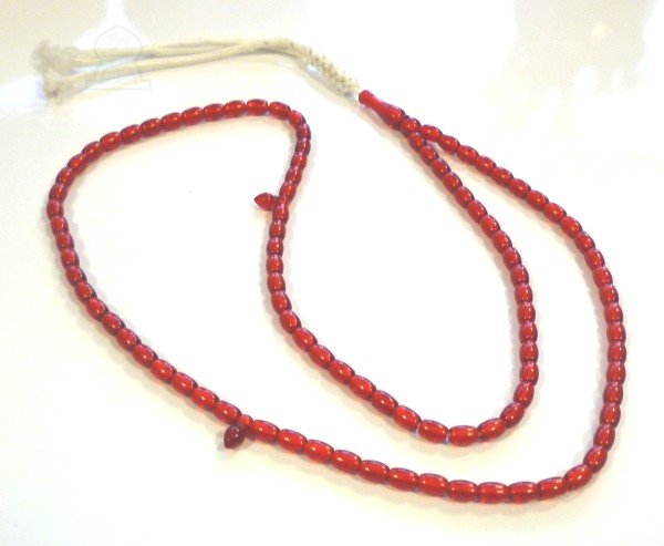Chapelet "Sebha" rouge à 99 grains ovales avec séparateurs tous les 33 grains.