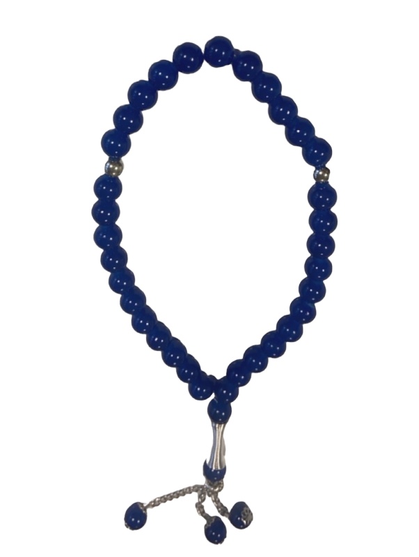Chapelet (Subha) de luxe a 33 grosses perles de couleur Bleu avec petites perles argentees