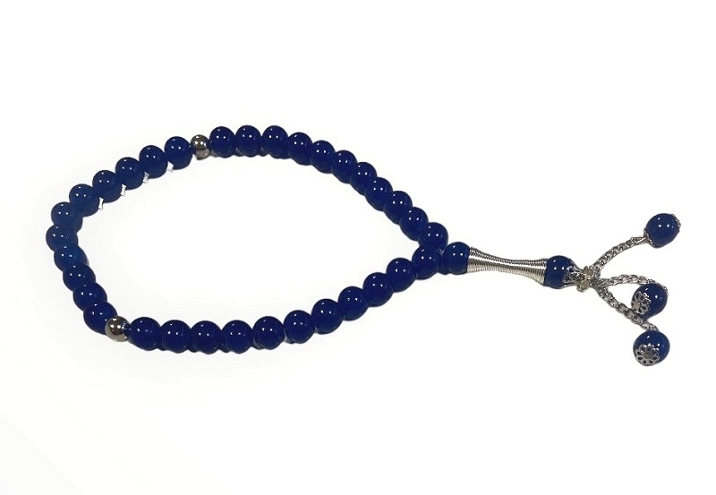 Chapelet (Subha) de luxe à 33 grosses perles de couleur Bleu avec petites perles argentées - REF. 40261 (6.90 €)