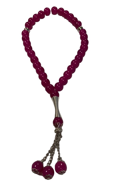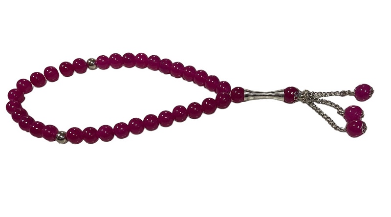 Chapelet (Subha) de luxe à 33 grosses perles de couleur Rouge avec 2 séparateurs argentés Deco & Cadeau