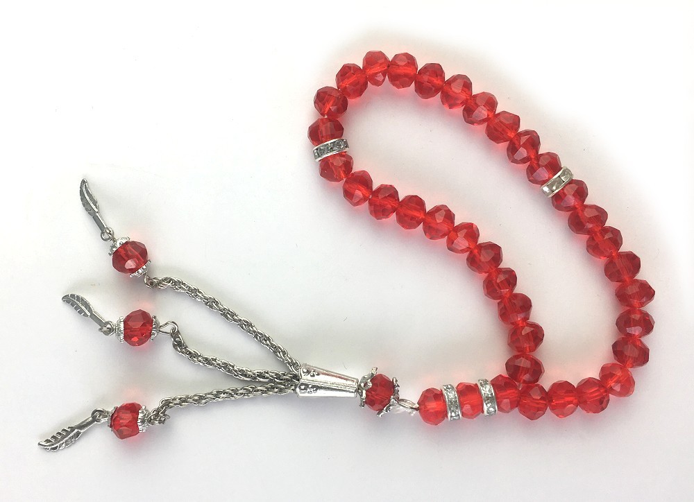 Chapelet de luxe à 33 perles en cristal de couleur rouge. Séparateur toutes les 11 perles.
