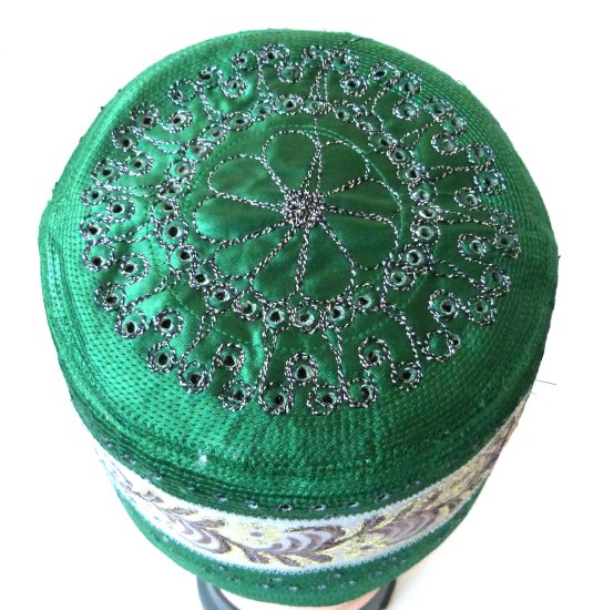 Chachia traditionnelle de couleur vert foncé avec décoration argentées tout autour... De petits trous discrets permettent la respiration de la tête pour un meilleur confort. Taille 57