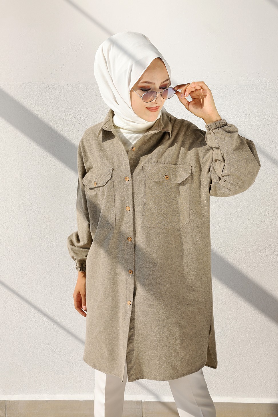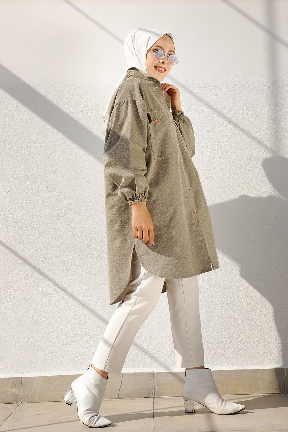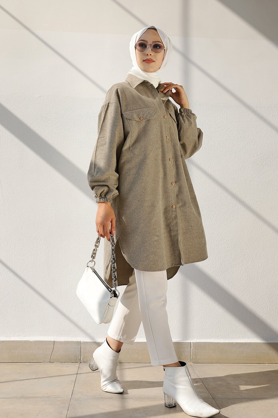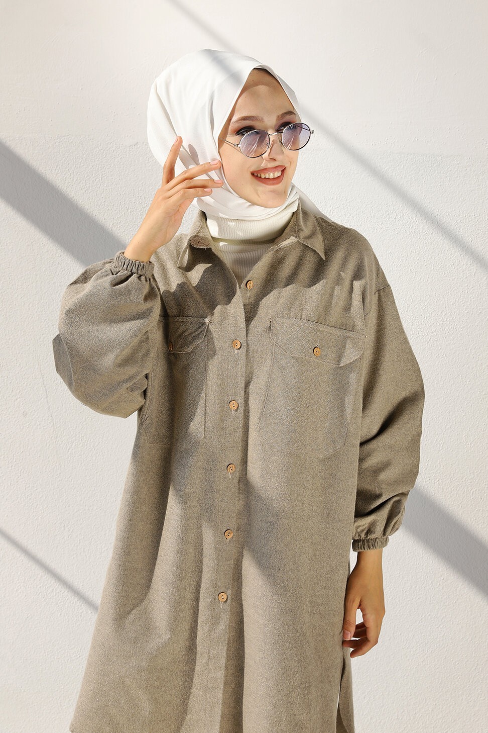 Chemise longue et ample pour femme (Vetement large pour hijab) - Couleur kaki - REF. 35091 (28.00 €) - En Promotion à 19.90 €
