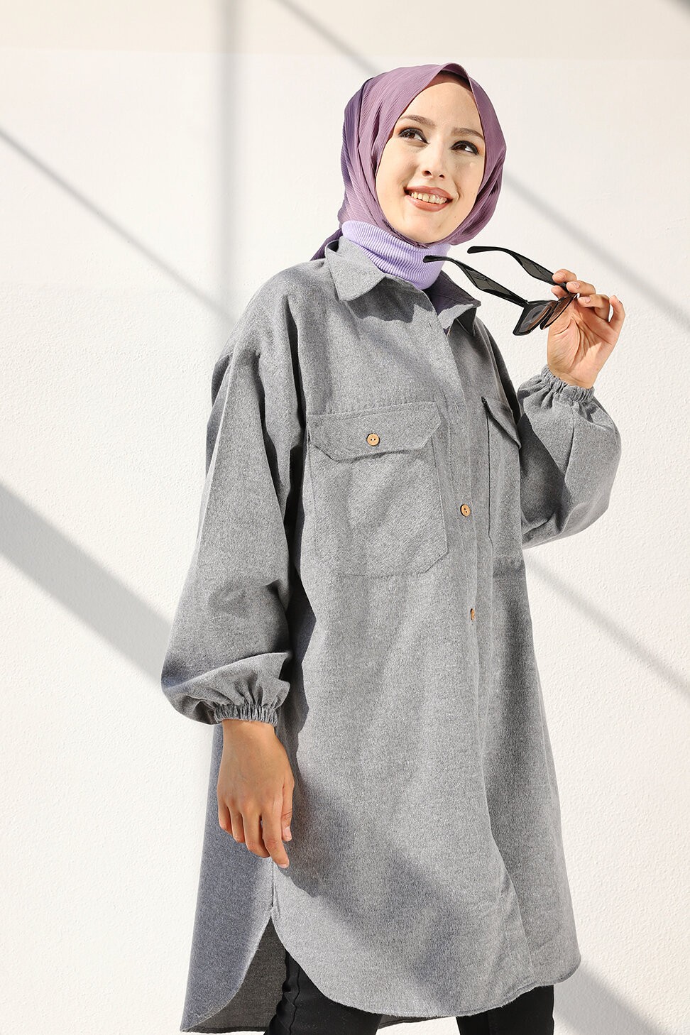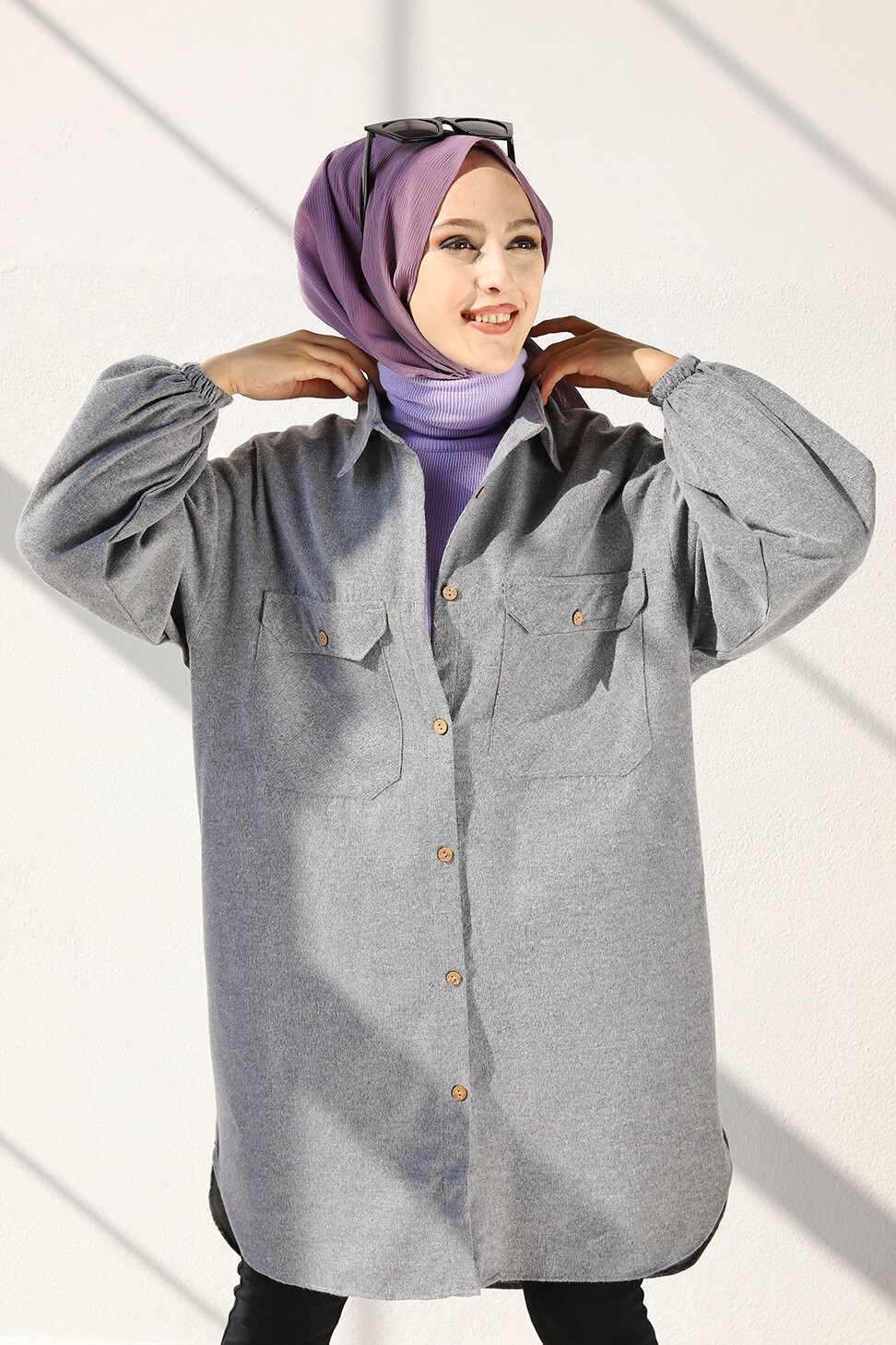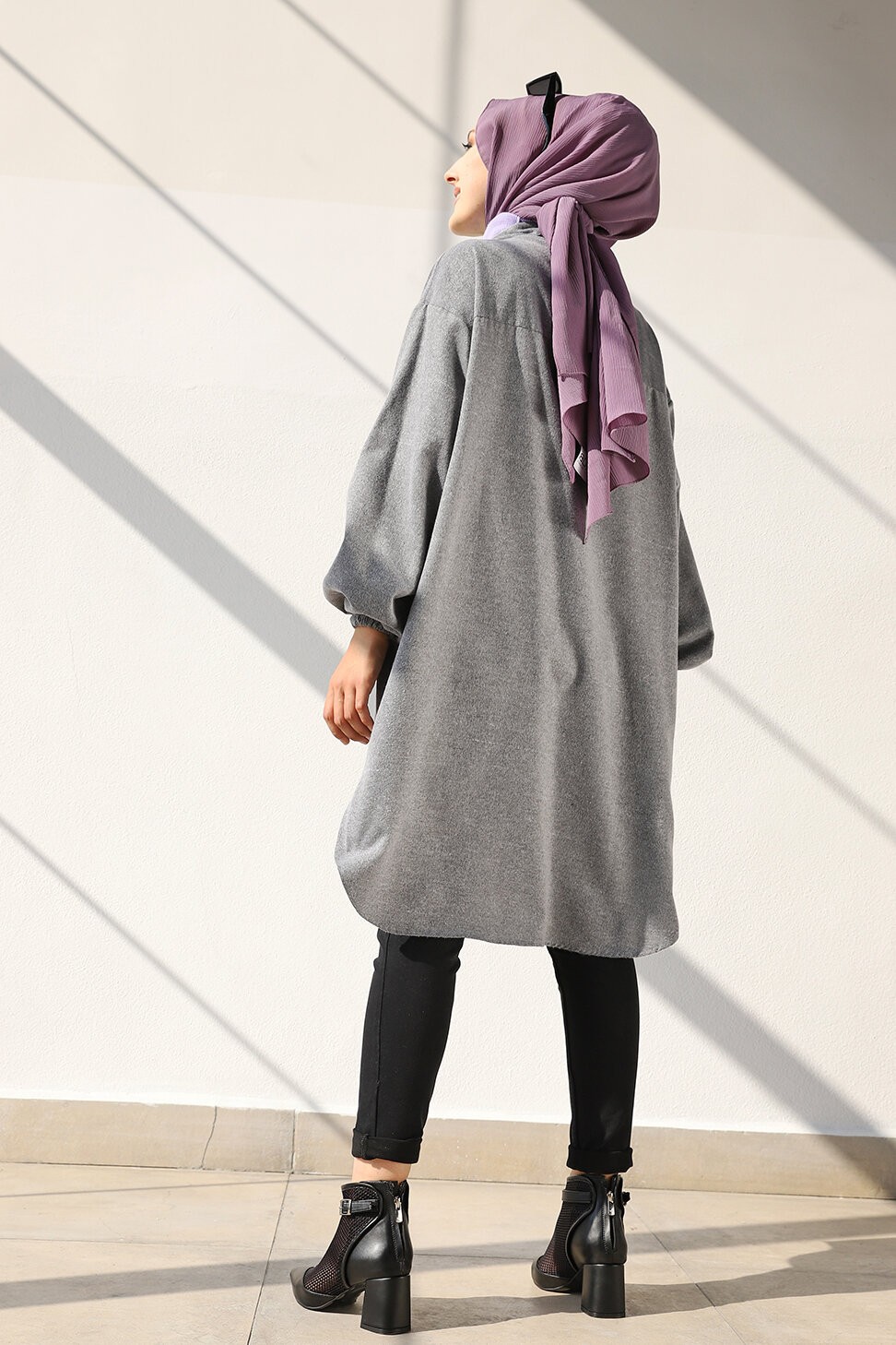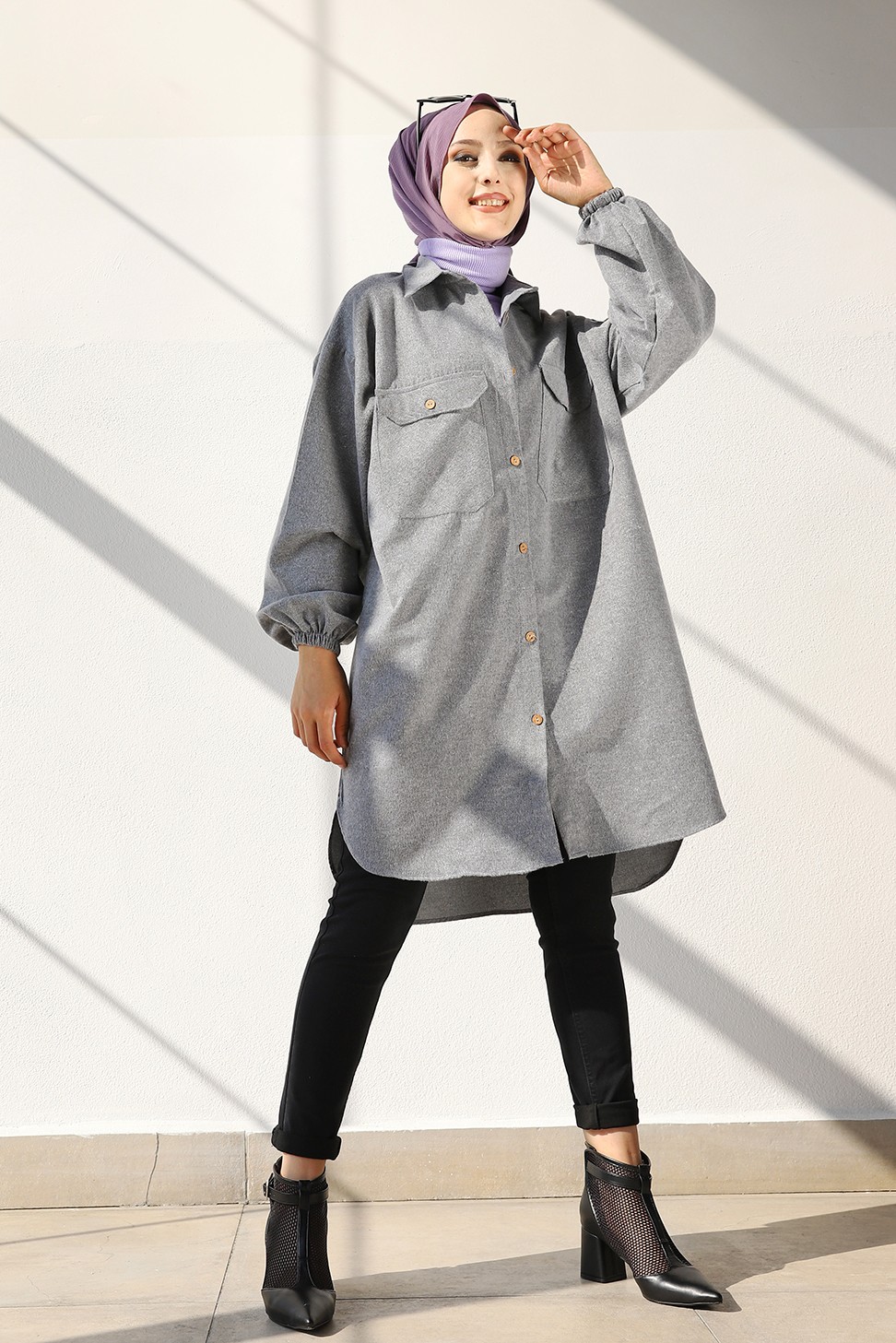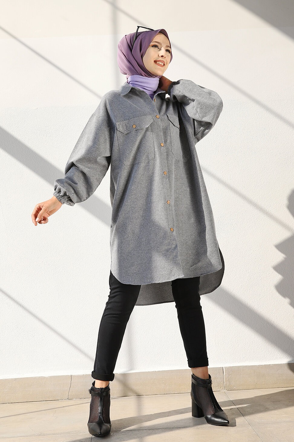 Chemise-Tunique ample pour femme (Vêtement Hidjab) - Couleur gris foncé Vetement & Accessoire
