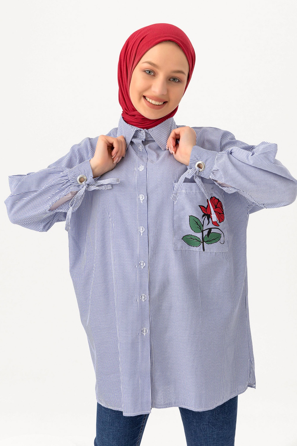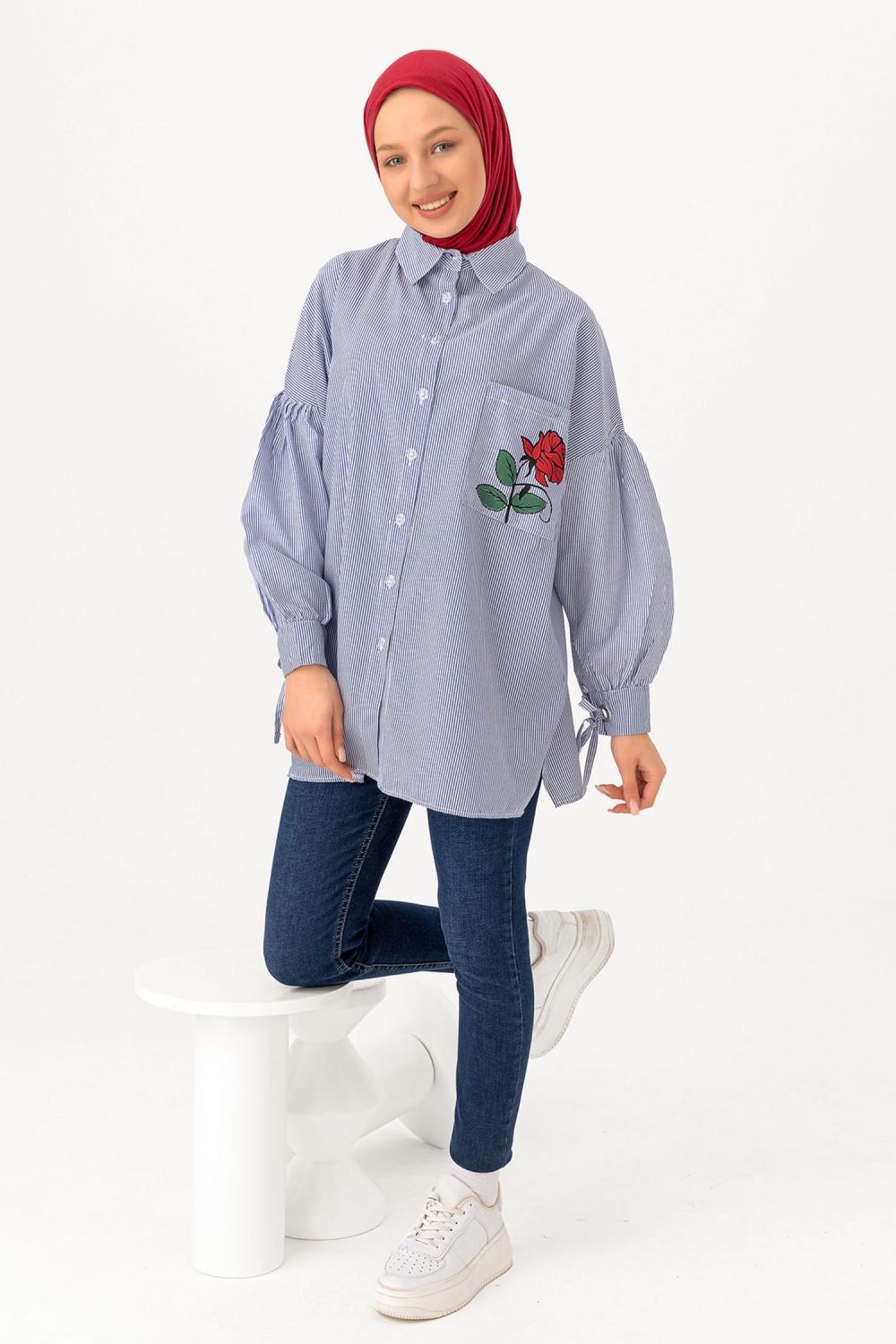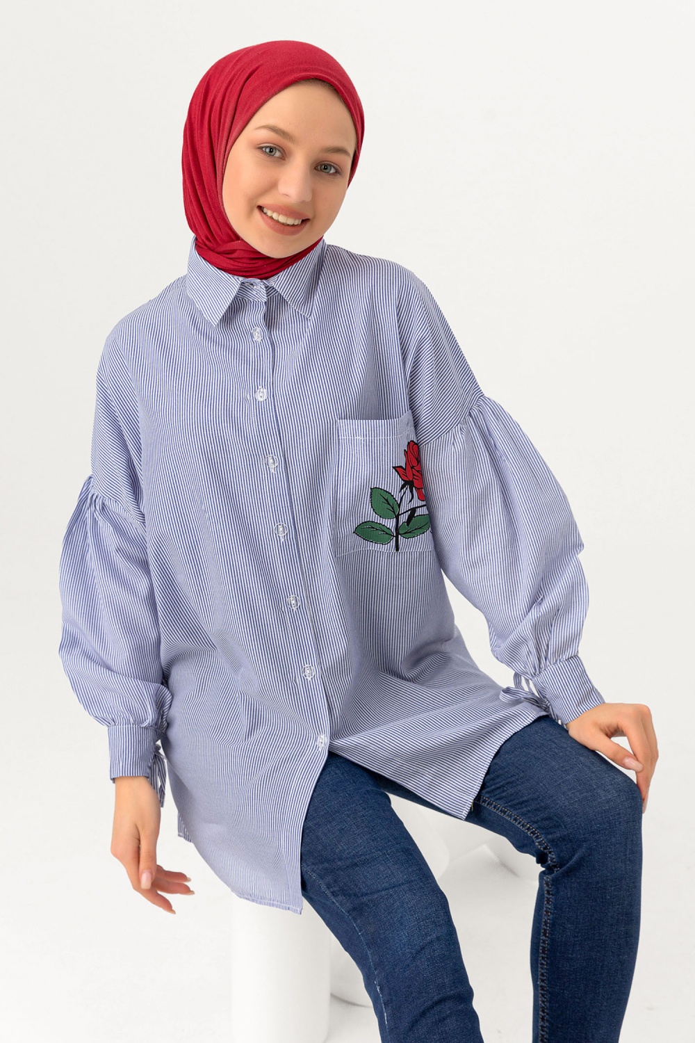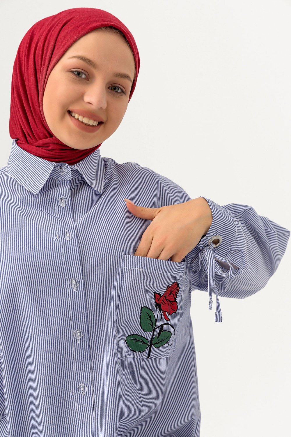 Chemise-Tunique motif fleur (Vetement pour femme voilee) - Couleur des rayures : bleu