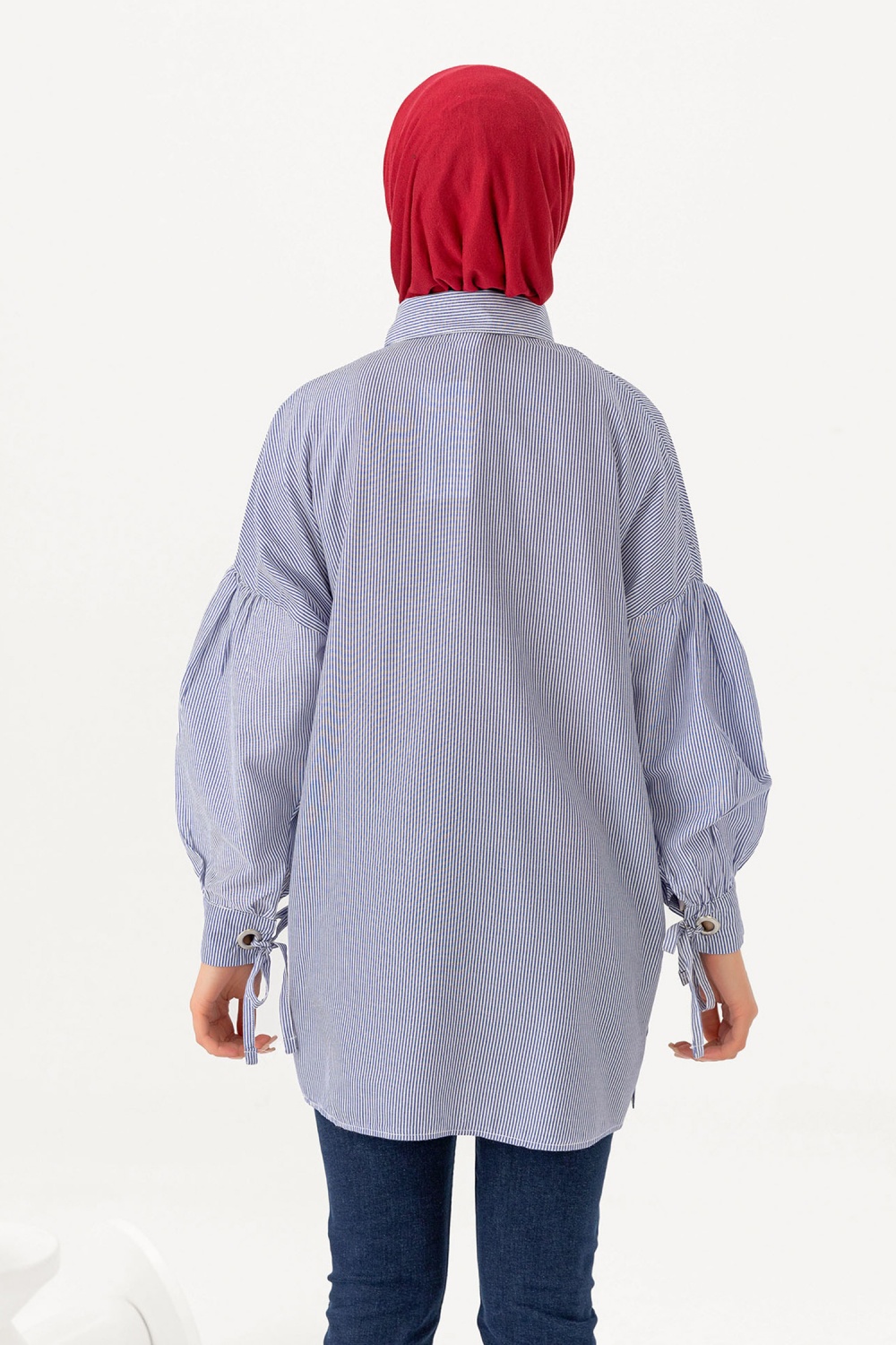 Chemise-Tunique longue à rayures (Vêtements pour femme voilée - Collection Mode musulmane) - Couleur bleu