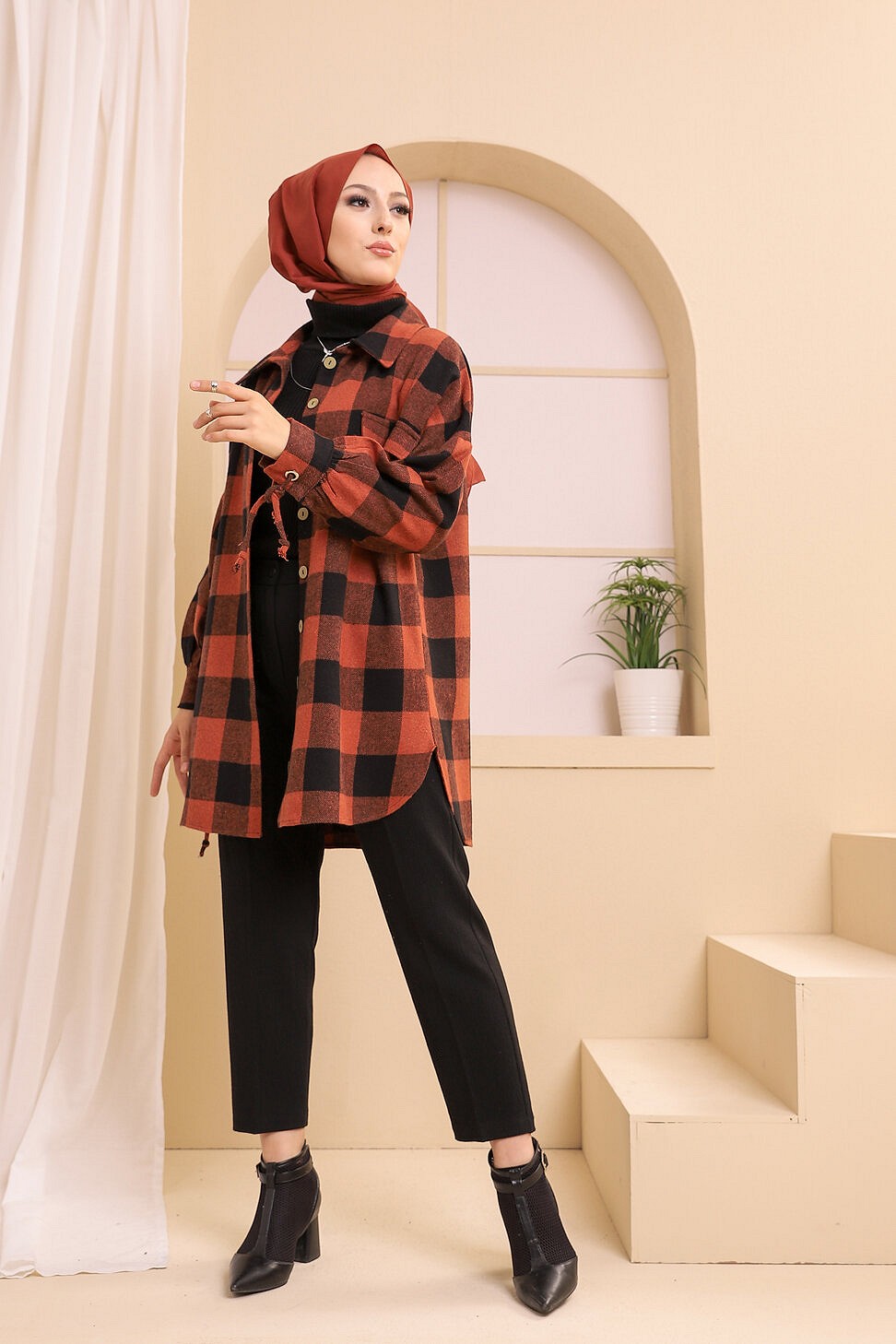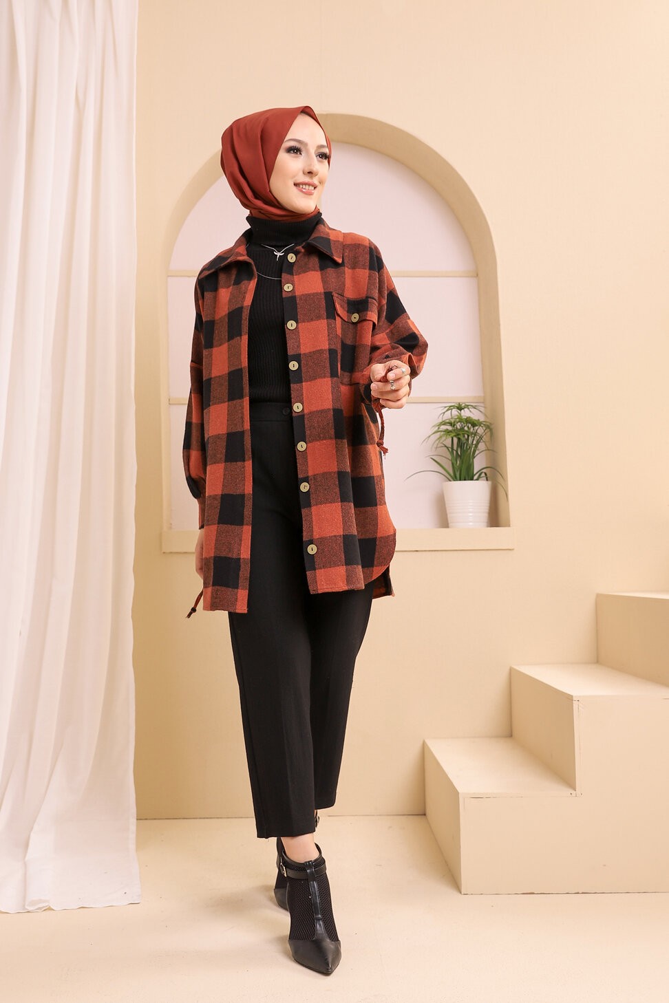 Veste avec ceinture (Vetement Hijab - Boutique en ligne France) - Couleur brique - REF. 35396 (19.90 €)