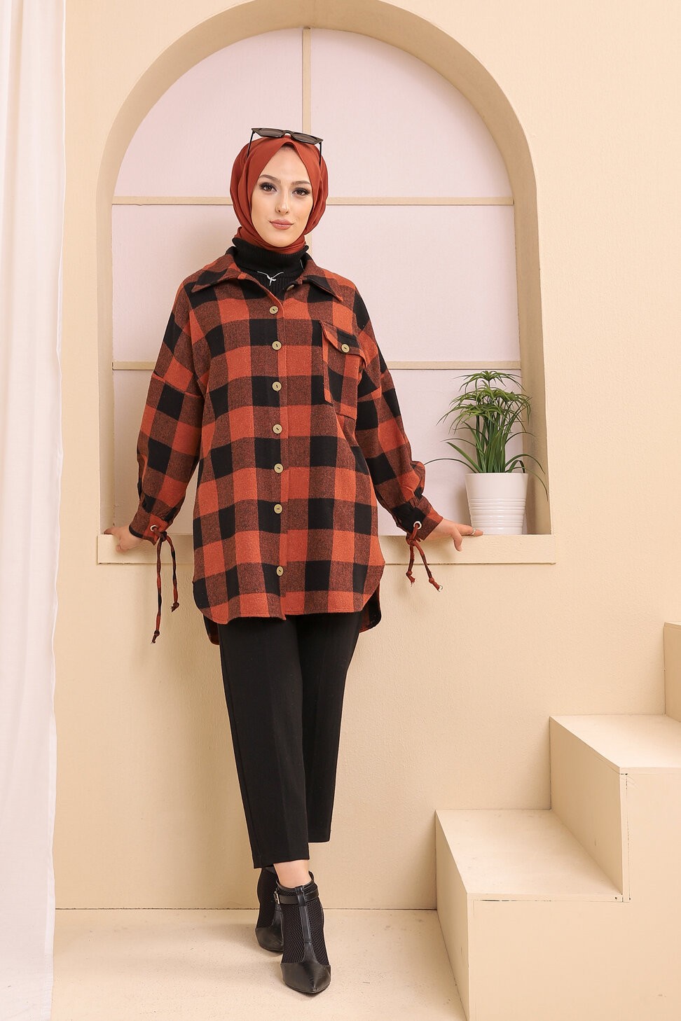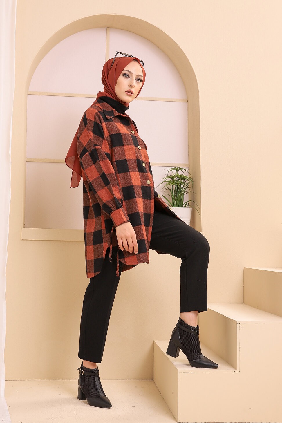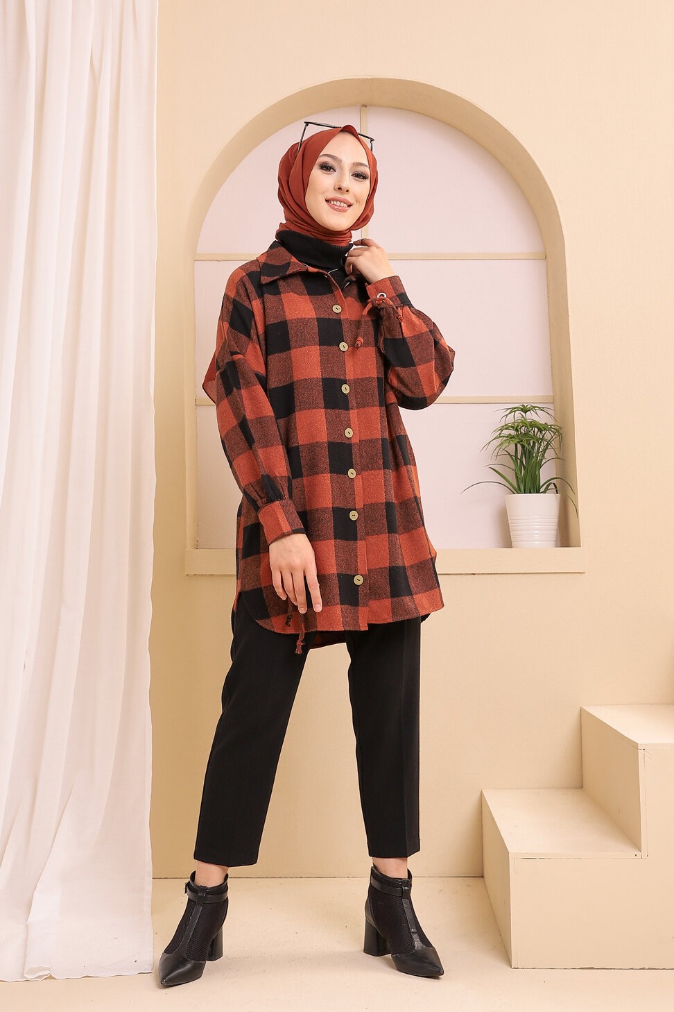 Chemise à careaux (Tunique pour femme) - Couleur brique Vetement & Accessoire