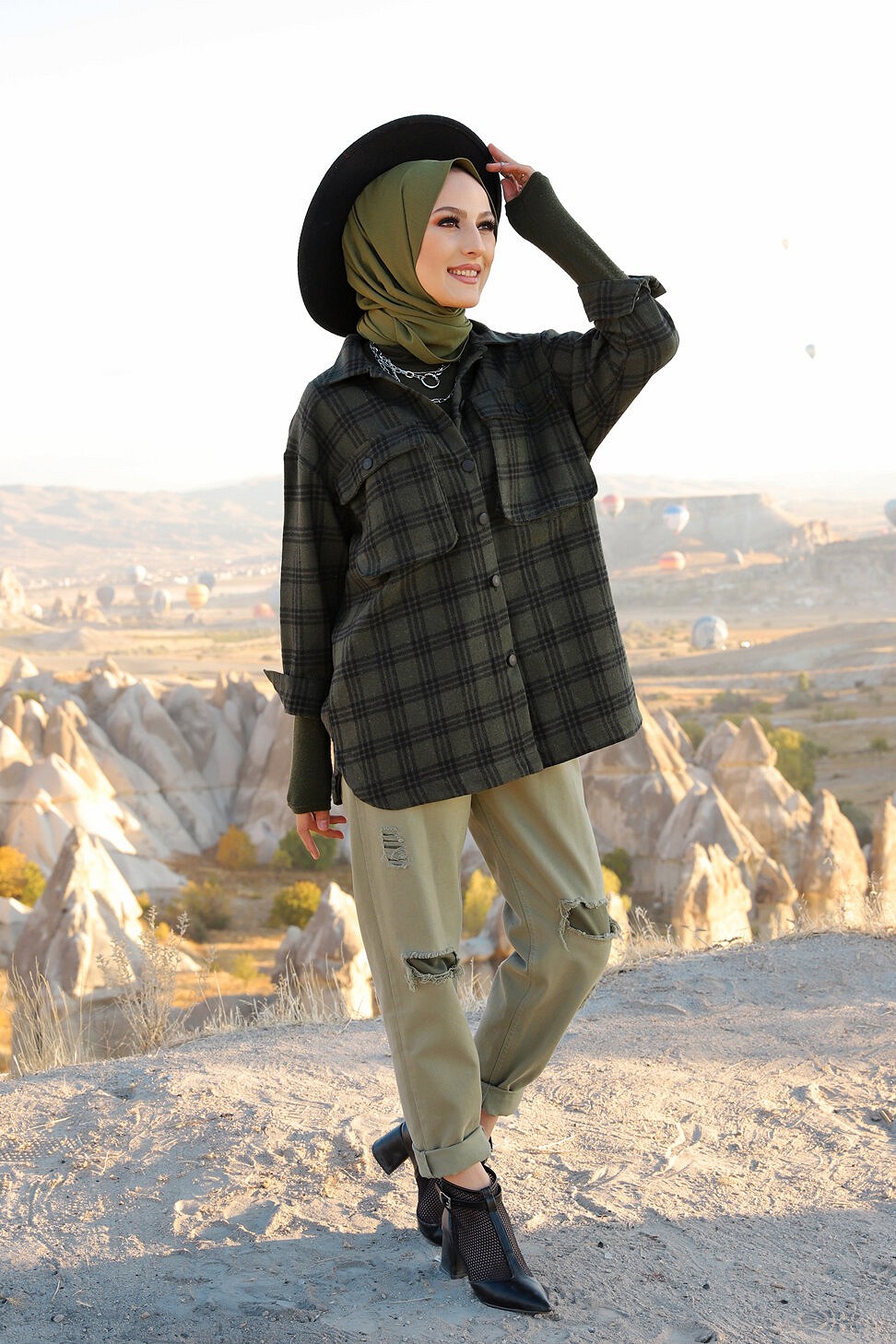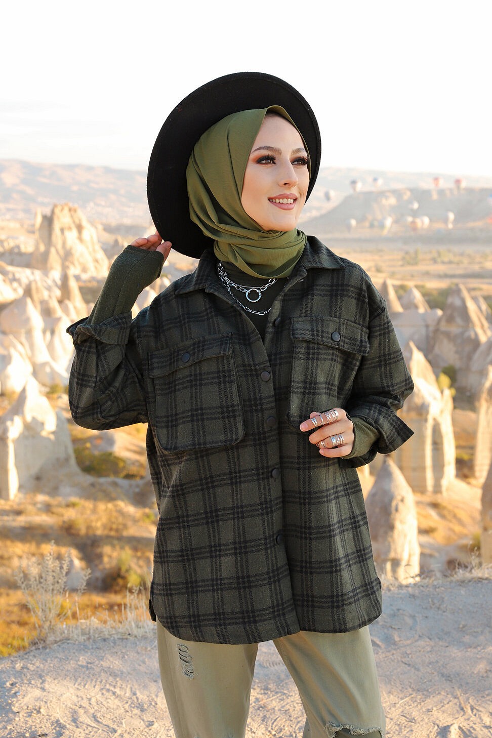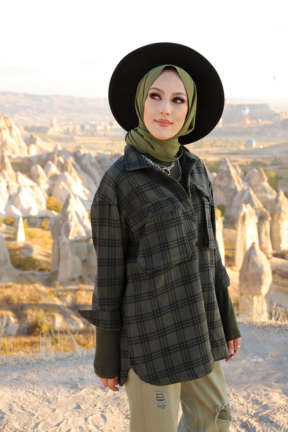 Chemise à carreaux (Boutique vêtements modernes turque pour femme) - Couleur noir et kaki Vetement & Accessoire