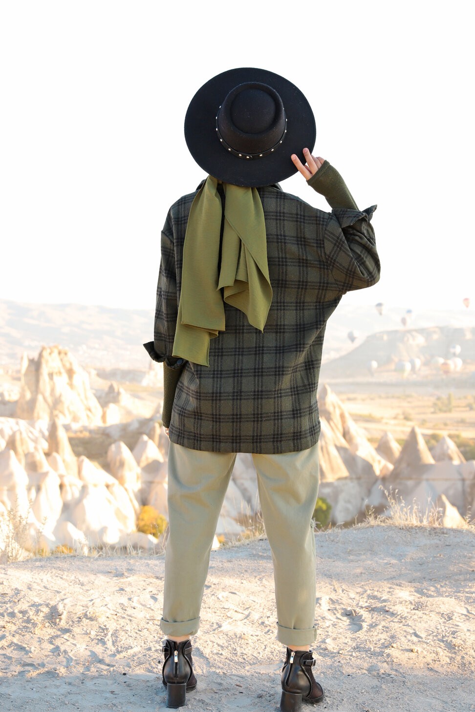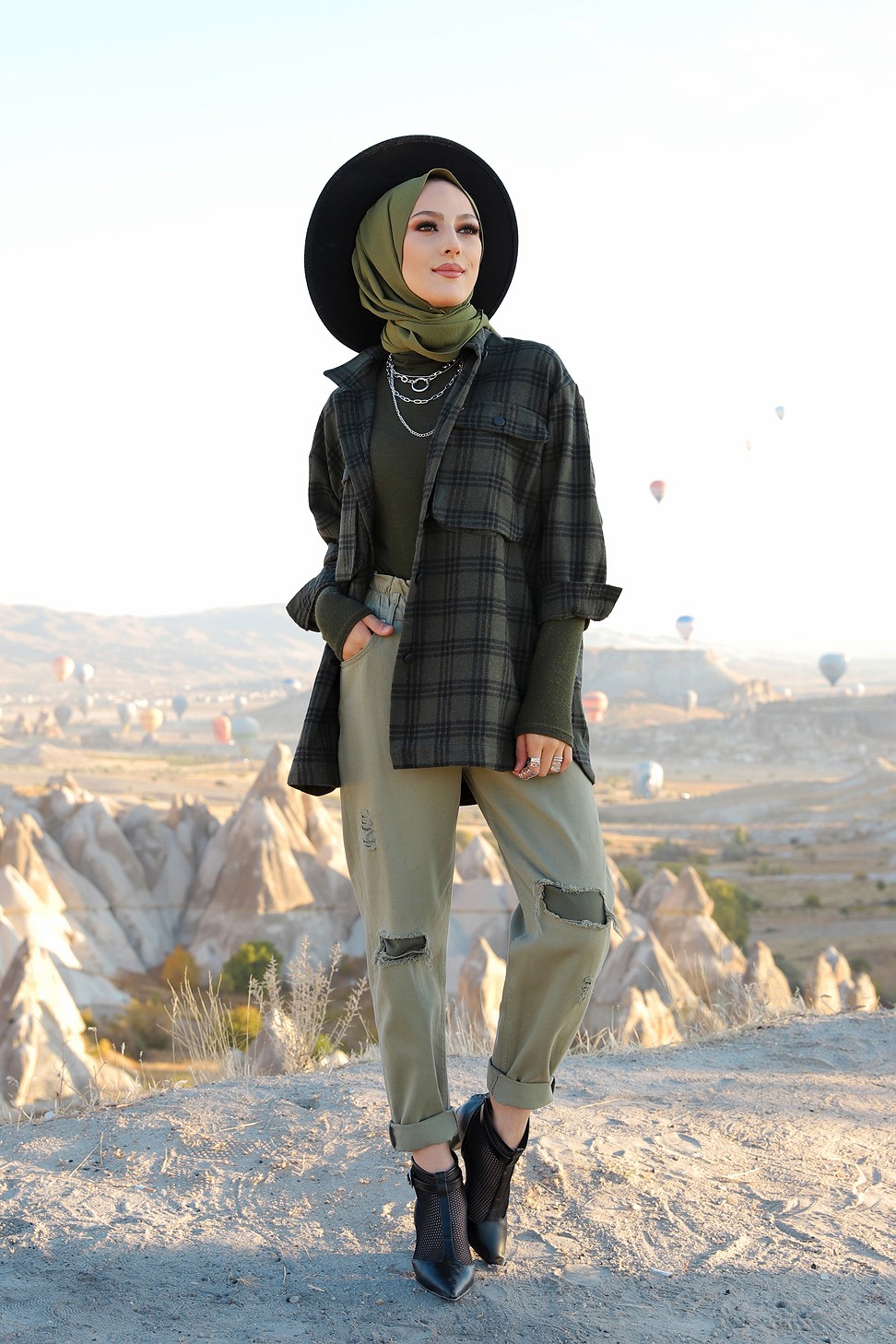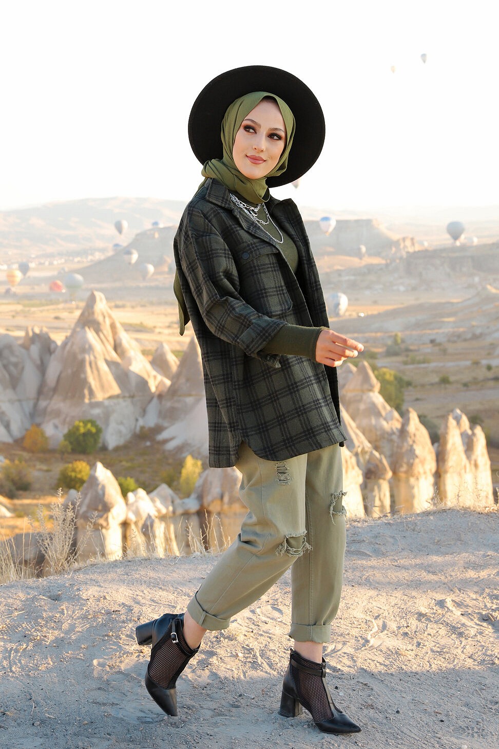 Chemise à carreaux (Boutique vêtements modernes turque pour femme) - Couleur noir et kaki Vetement & Accessoire