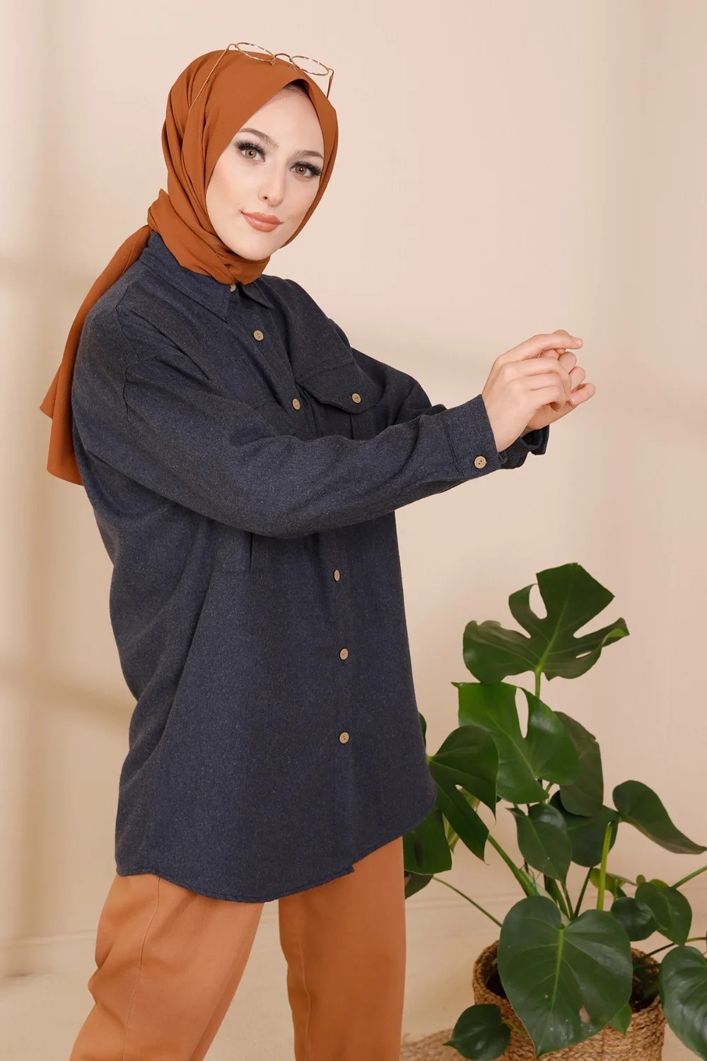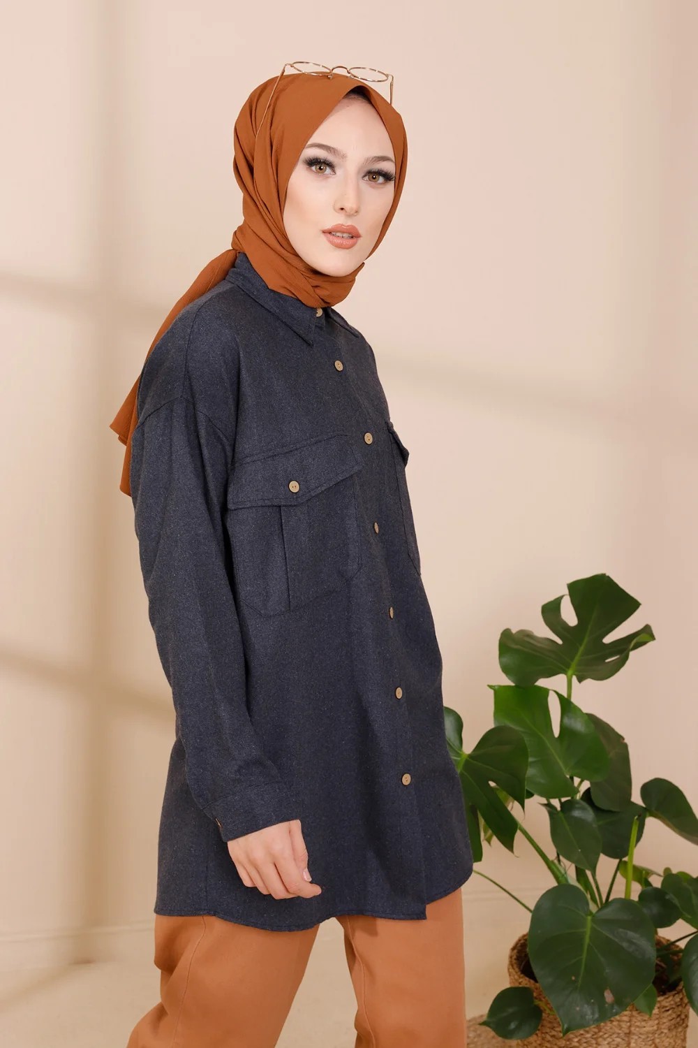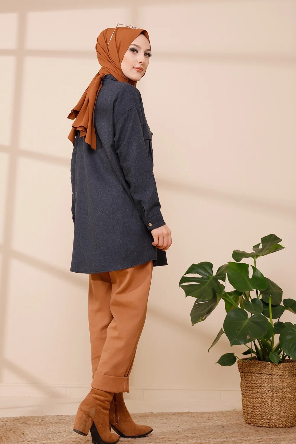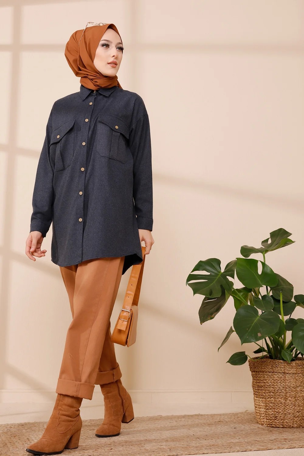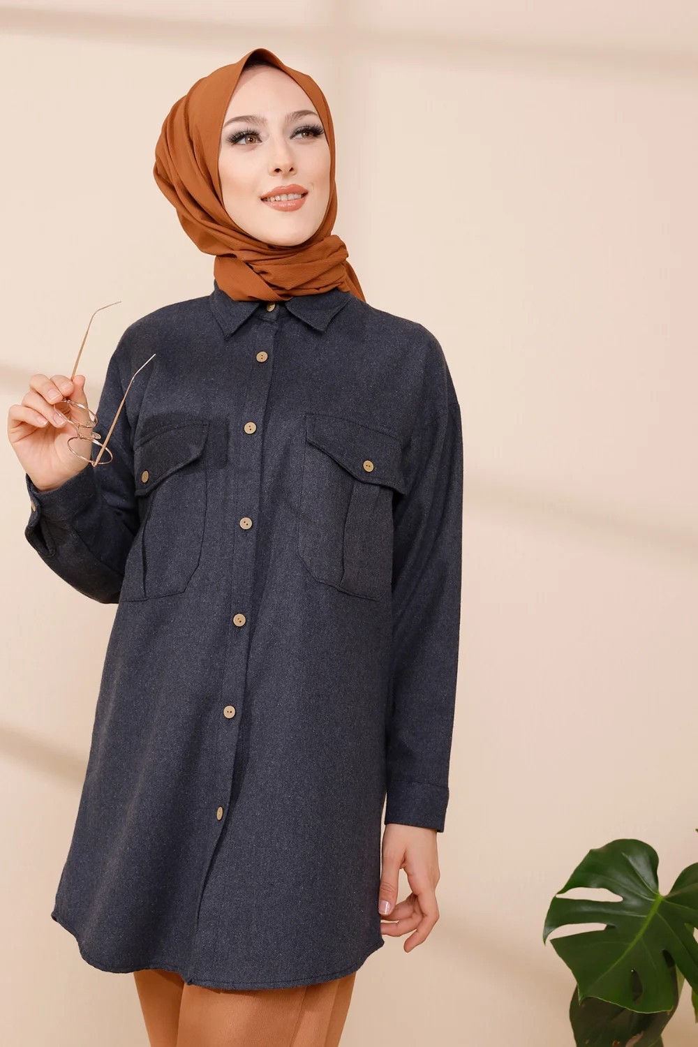Chemise longue et ample pour femme (Tunique large pour hijab) - Couleur taupe - REF. 37136 (28.00 €)