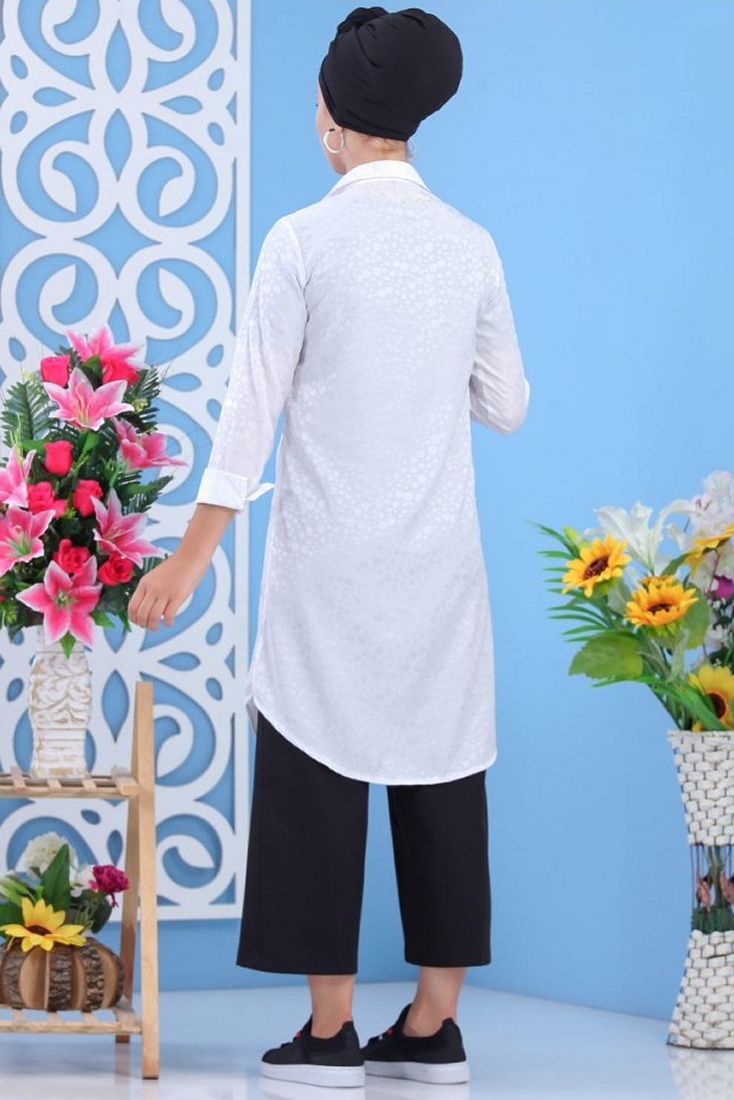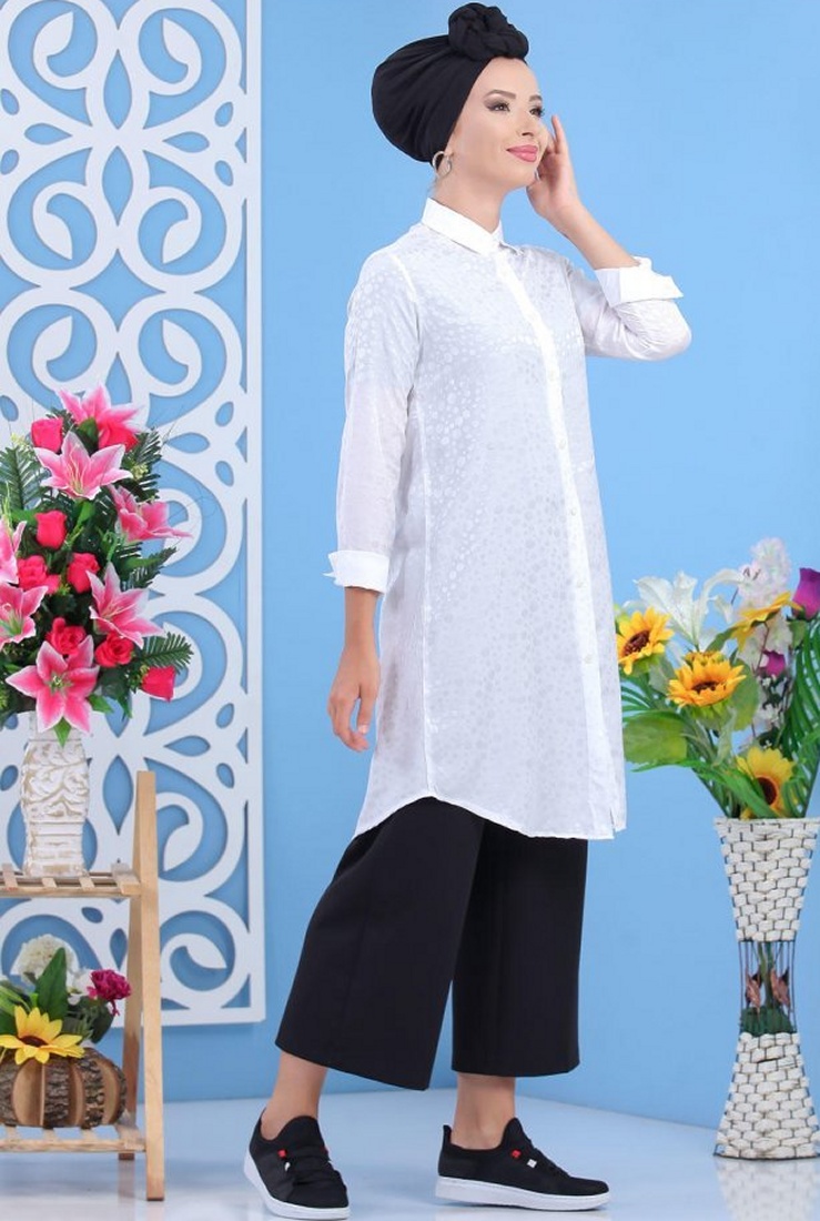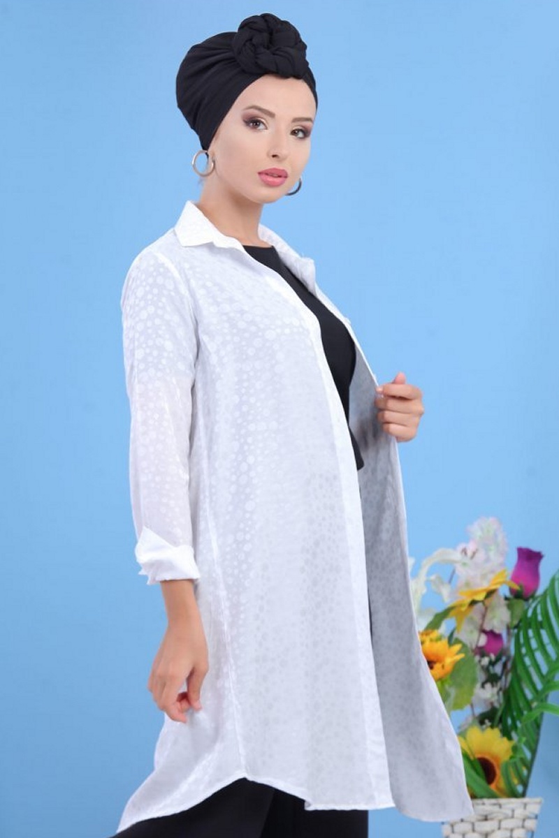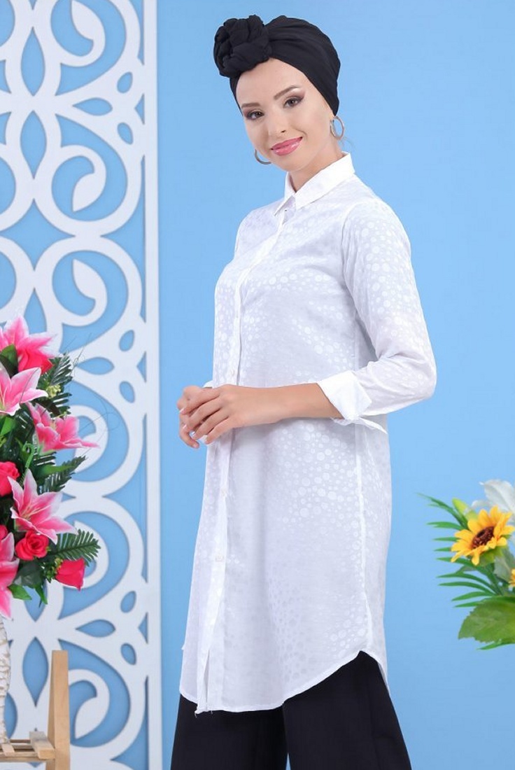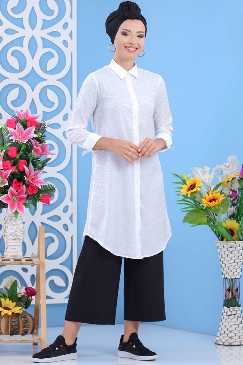 Chemise femme longue blanche avec légers motifs satinés Vetement & Accessoire