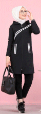 Veste sweat longue à capuche pour femme (Hijab sport en ligne) - Couleur noir - REF. 32756 (25.00 €) - En Promotion à 21.90 €