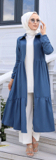 Veste zippée légère mi longue (Tenue ample pour femme voilée) - Couleur bleue pétrole - REF. 33155 (26.00 €)