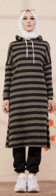 Tunique longue à rayures avec capuche (Vêtement moderne et sport pour hijab) - Couleur vert kaki - REF. 35739 (19.00 €)