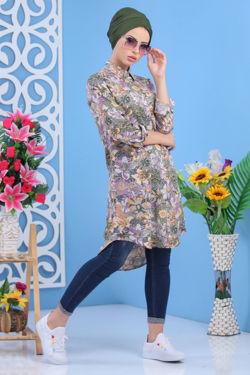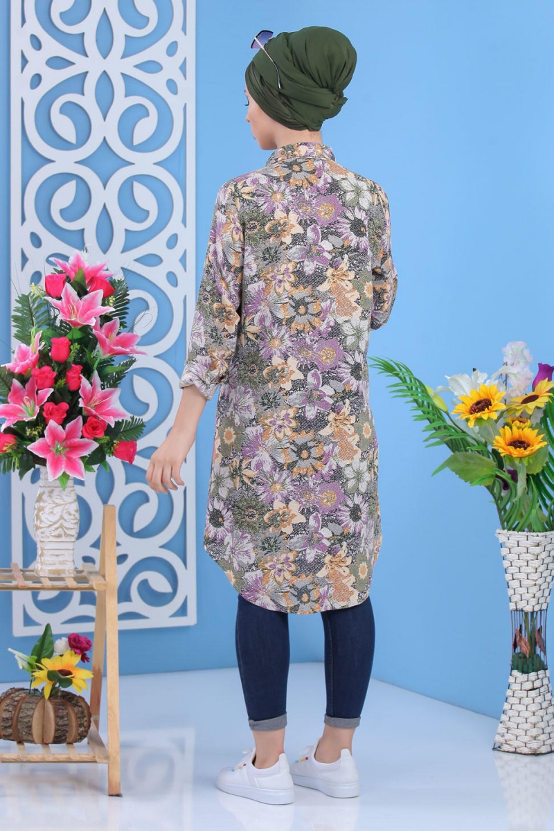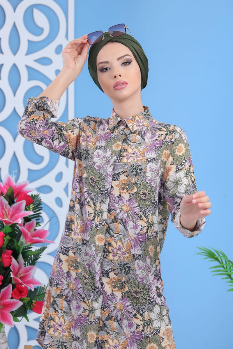 Chemise longue, col chemise, manches finition boutons aux poignets, coupe droite, extrémités arrondies, tissu fluide. Ce modèle reste un basique et indémodable qui se porte en toute saison et diverses occasions.