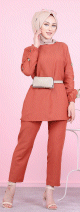 Ensemble tunique et pantalon assorti avec ceinture (Vetement pour femme voilée) - Couleur brique - REF. 34641 (29.00 €)
