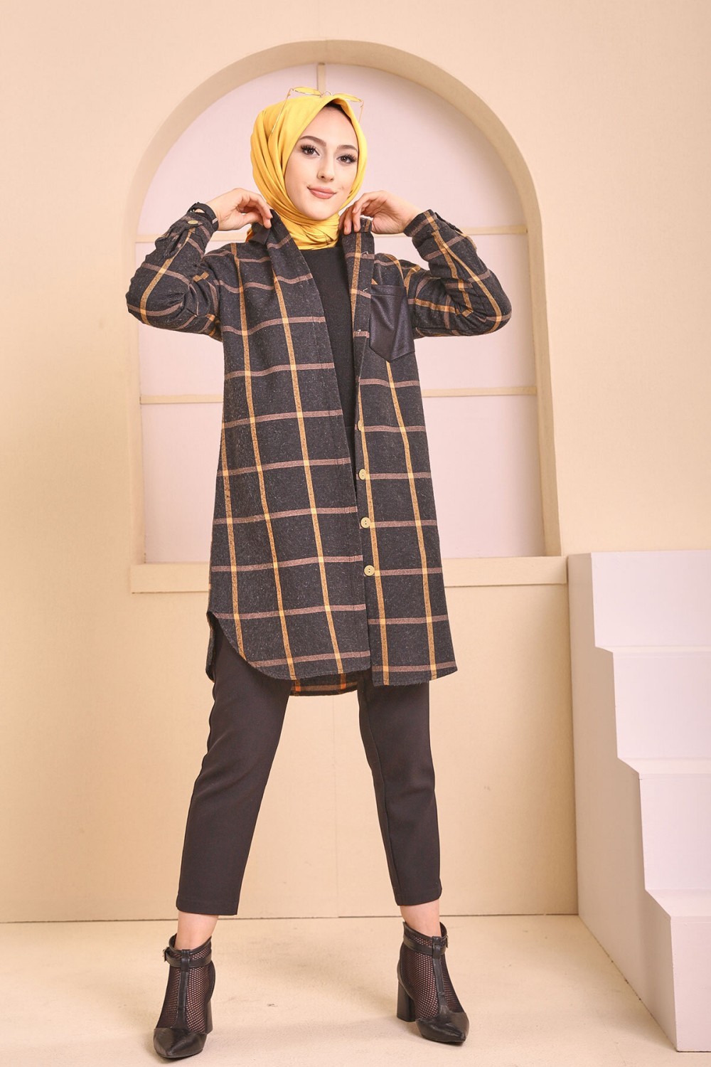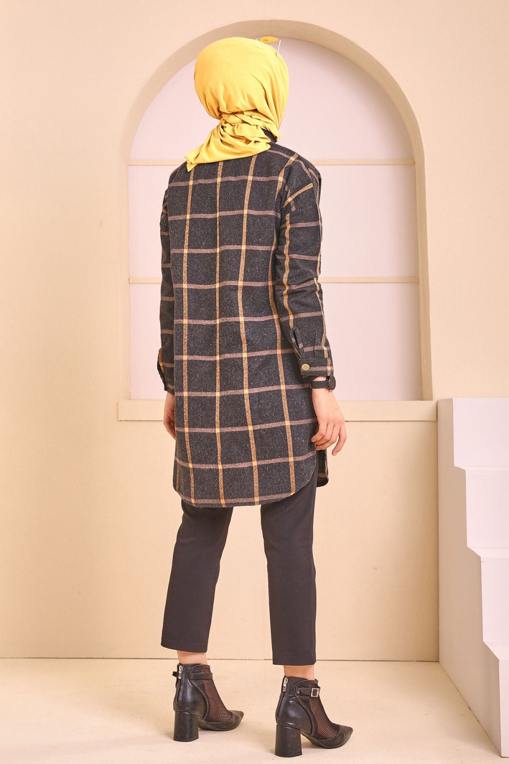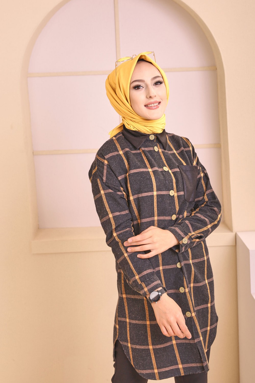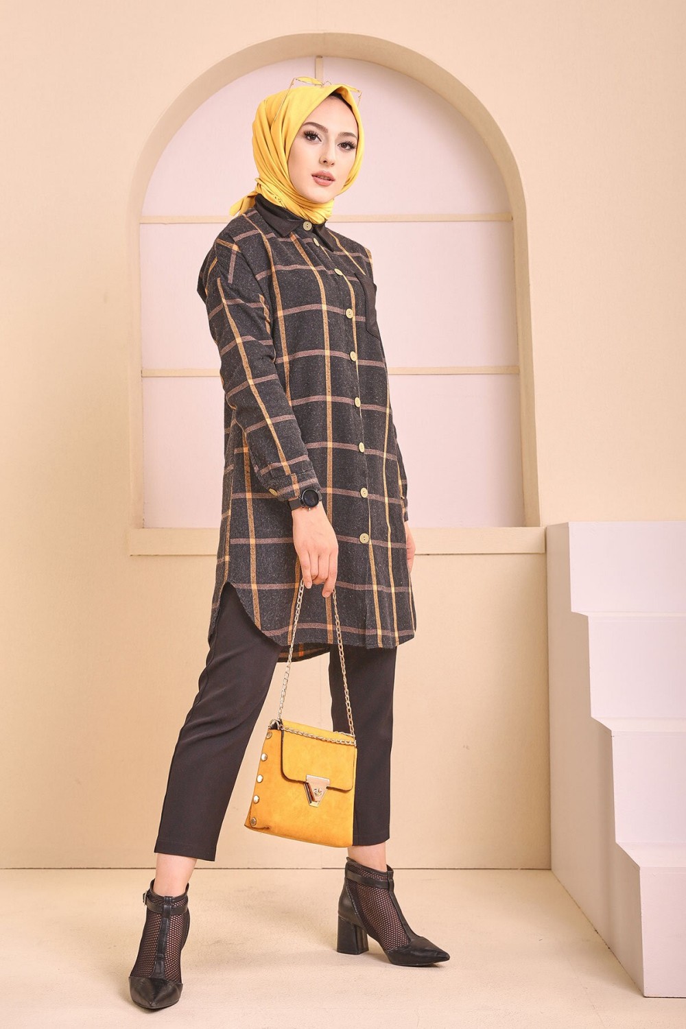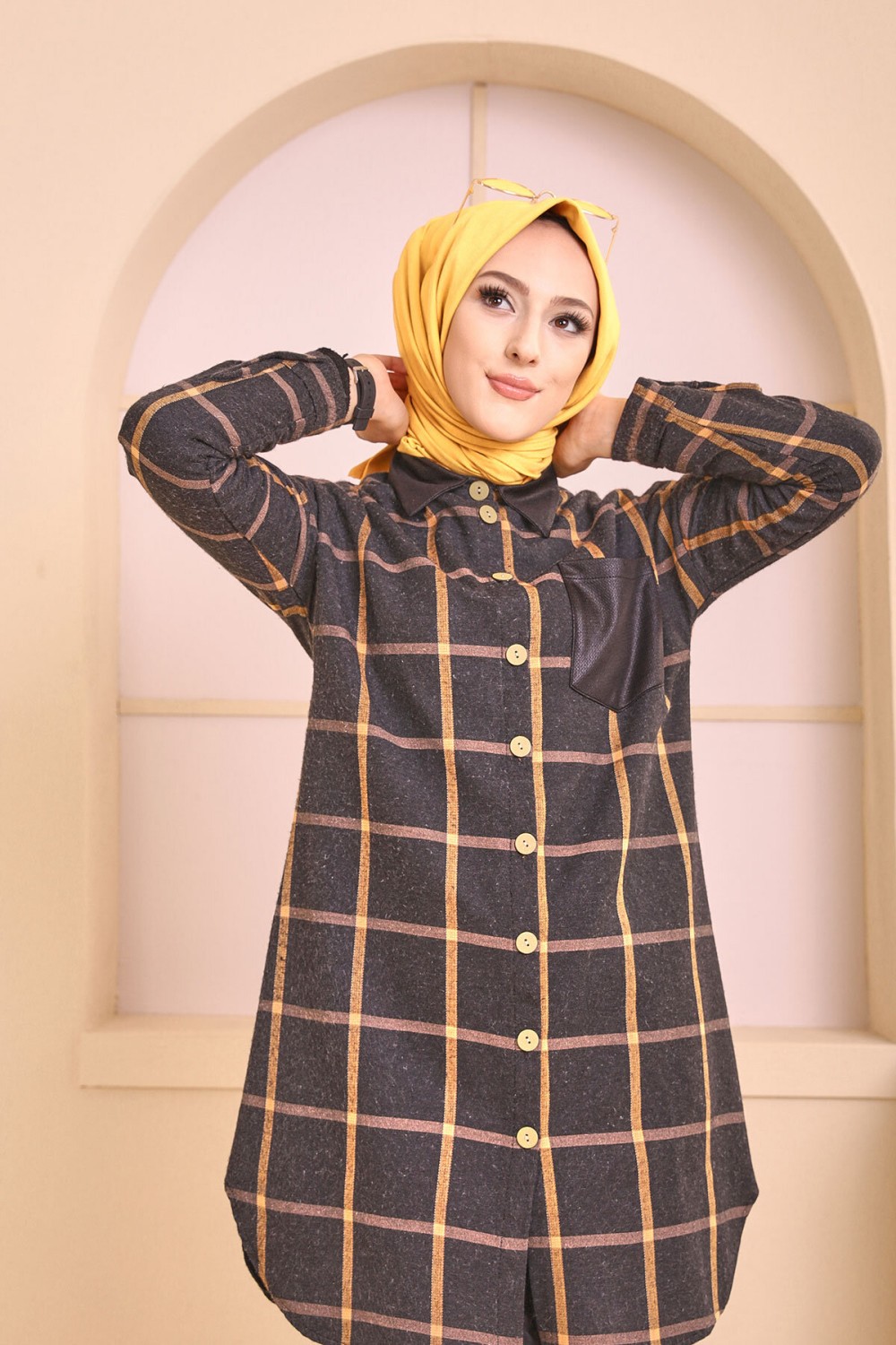 Chemise-Tunique boutonnée à carreaux pour femme (Vêtement Mode Musulmane Automne Hiver) - Couleur gris - REF. 35212 (26.90 €)