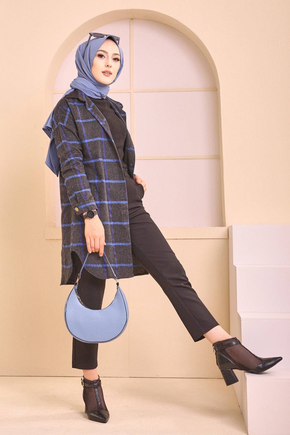 Trench-Coat Long pour femme (Boutique en ligne de Mode islamique Automne Hiver) - Couleur Bleu indigo - REF. 30821 (29.90 €)