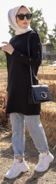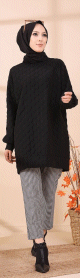 Tunique-pull pour femme (Vêtement Hijab chaud - Saisons Automne Hiver) - Couleur noir - REF. 35538 (24.90 €)